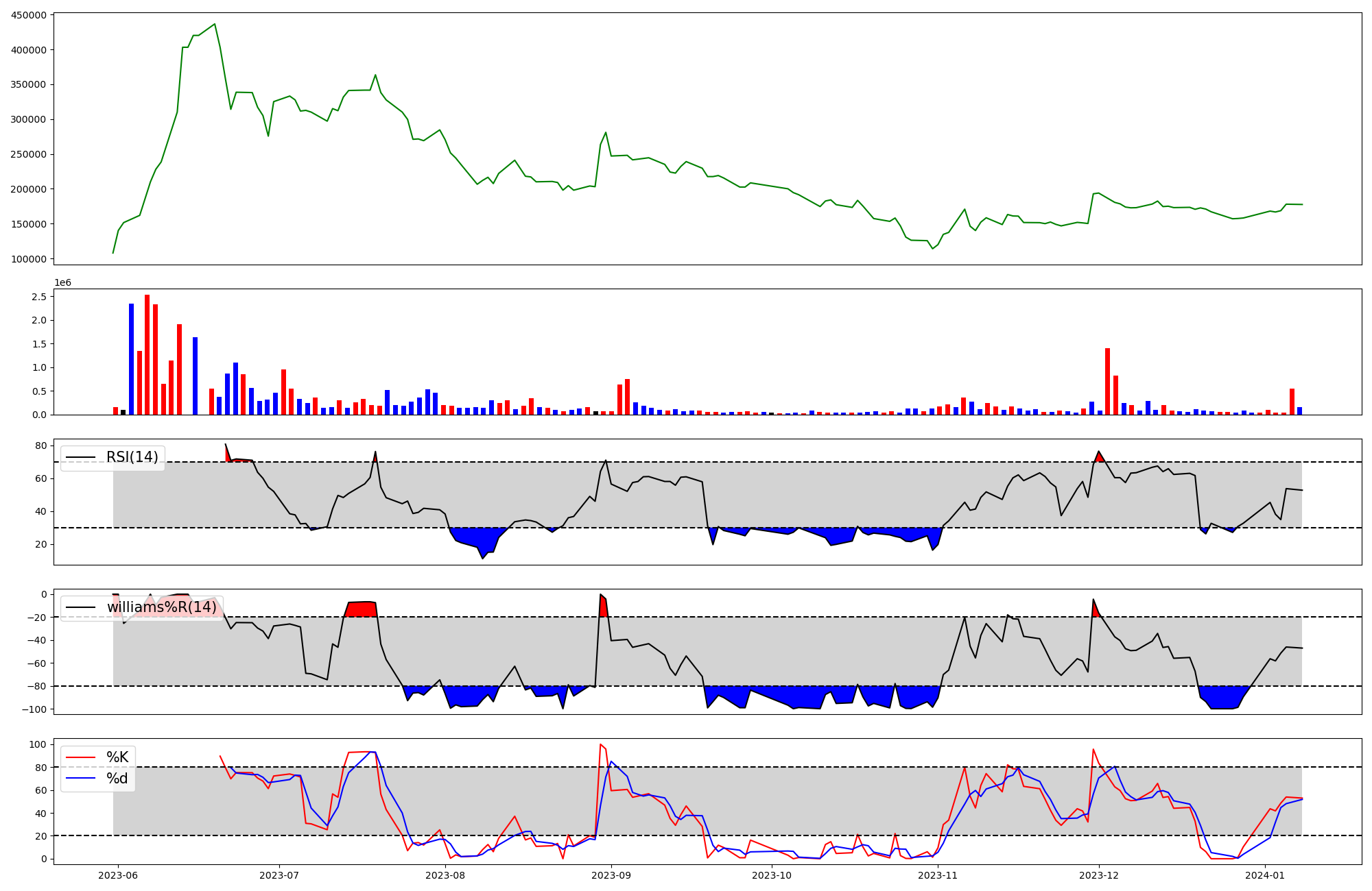 □ 장기 : 현재 종가가 장기(250일) 이동평균값(nan원)을 상회 하여 장기적 추세 상승 중