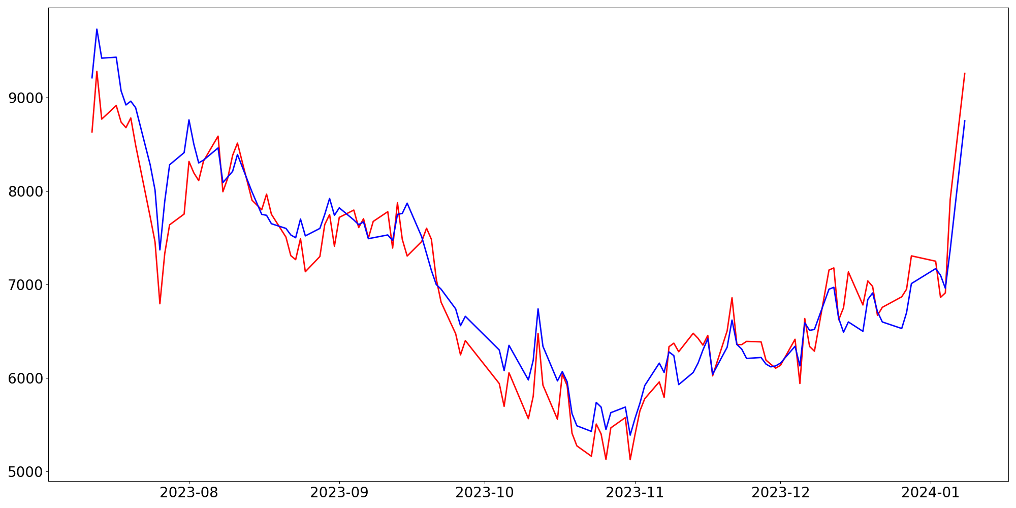 [ - : 실제값(종가) / - : 예측값(종가) ]