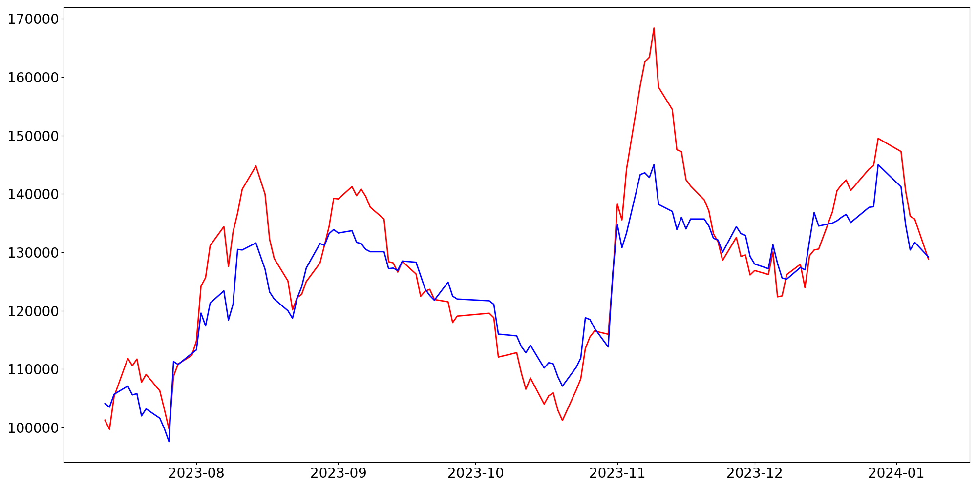 [ - : 실제값(종가) / - : 예측값(종가) ]