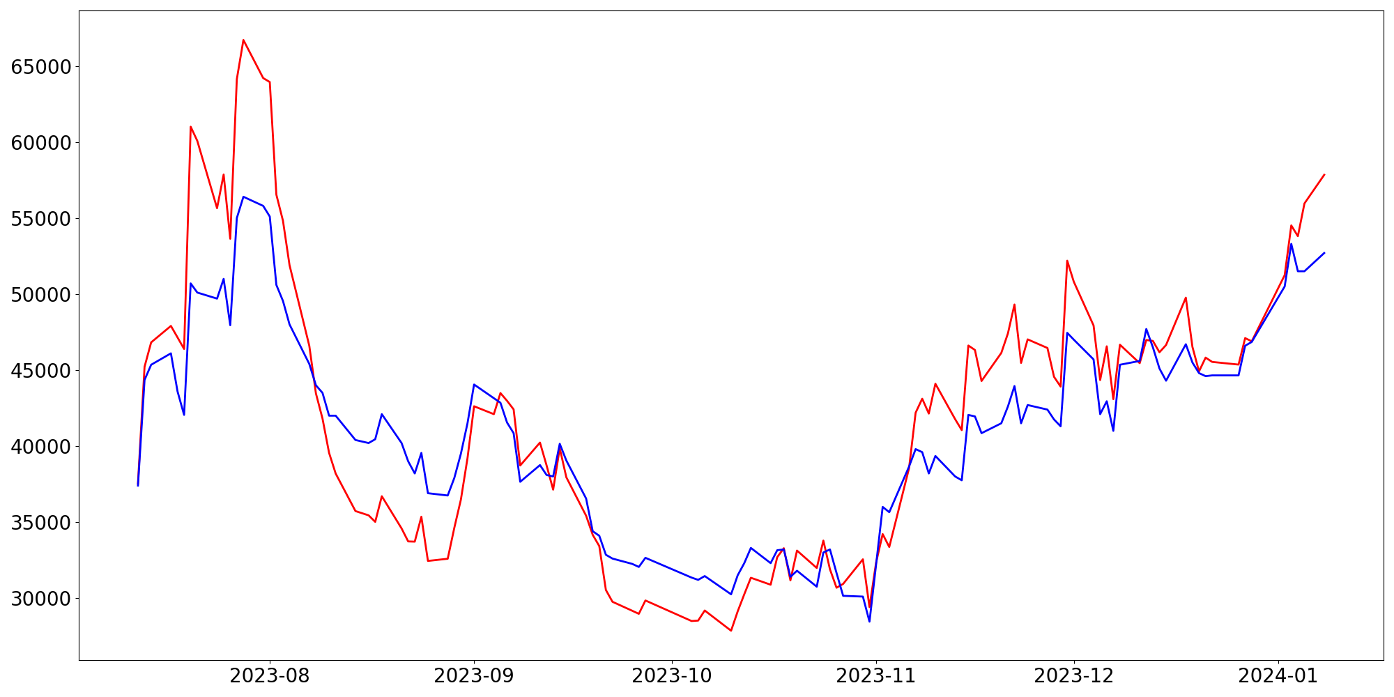 [ - : 실제값(종가) / - : 예측값(종가) ]