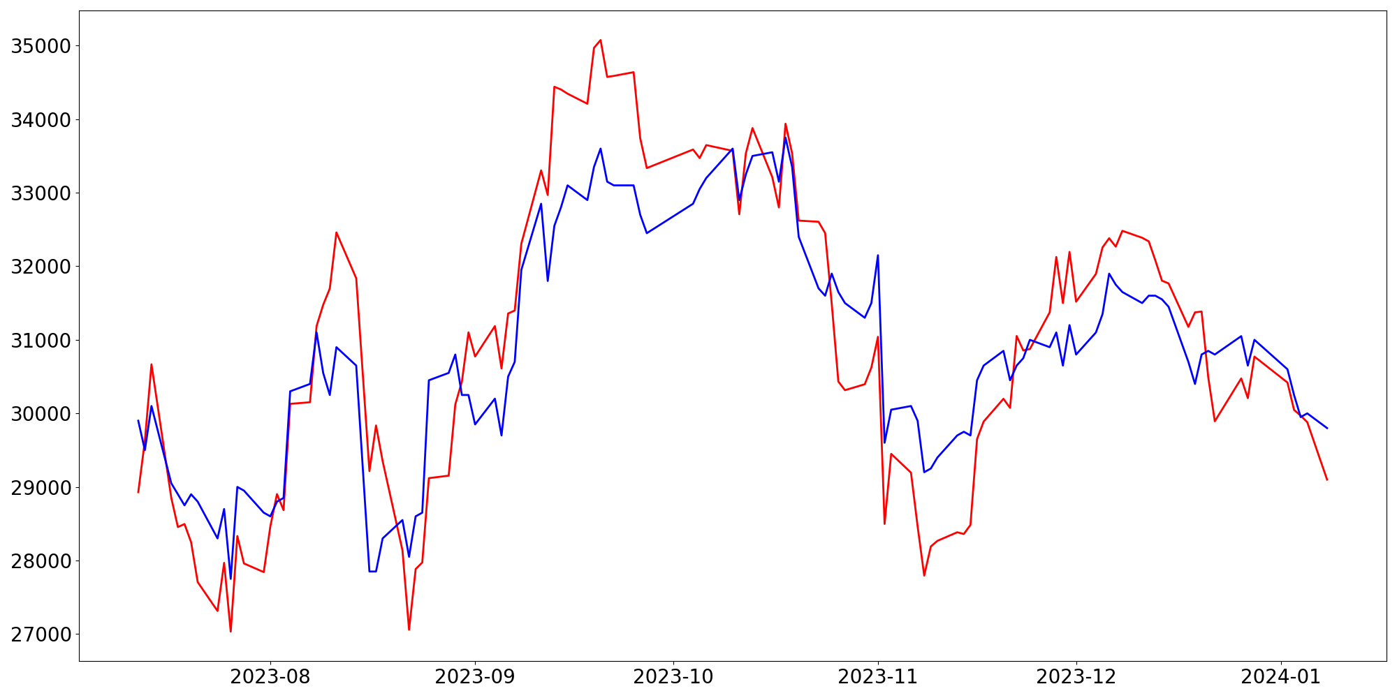 [ - : 실제값(종가) / - : 예측값(종가) ]