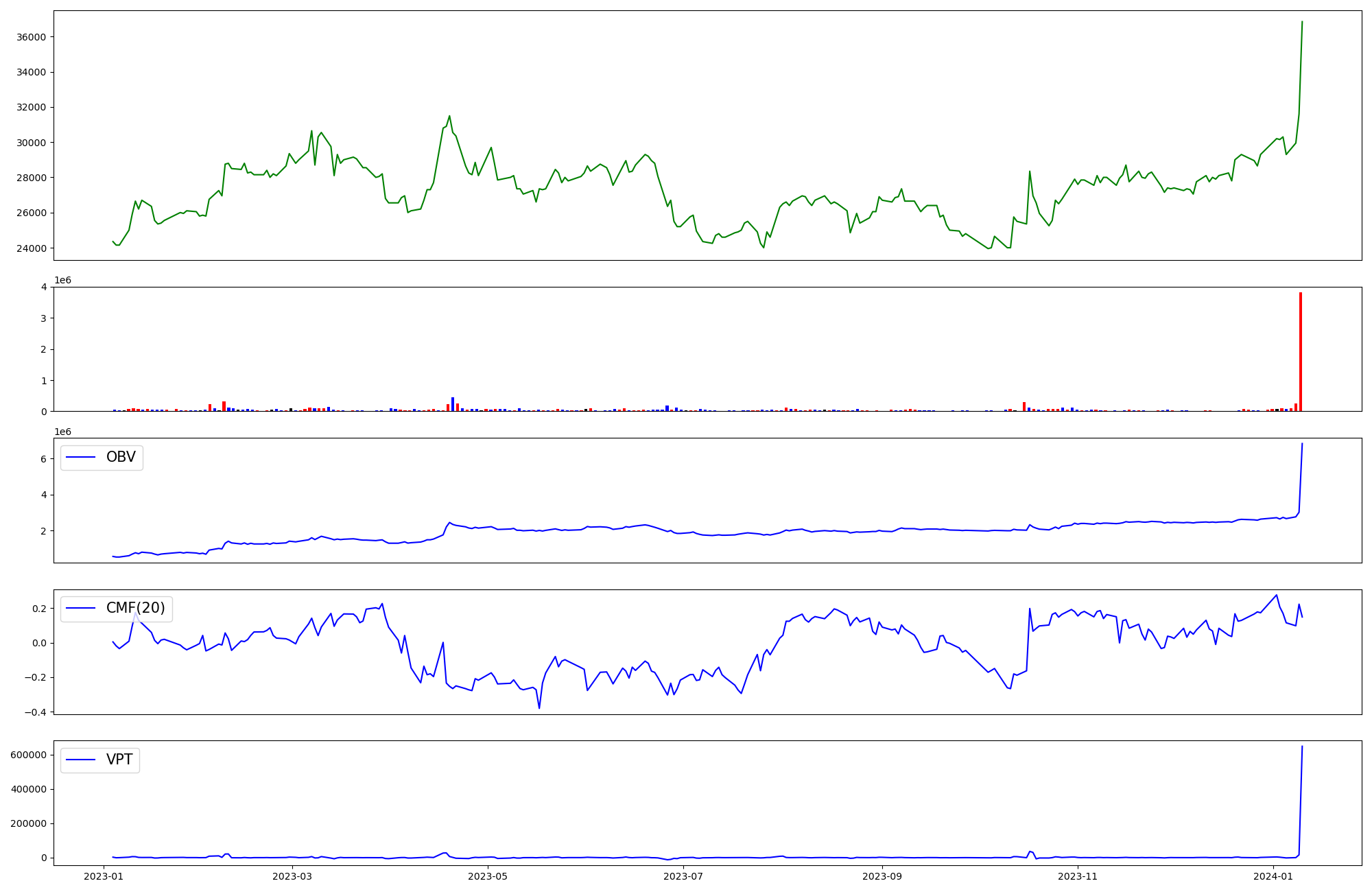 | OBV | CMF | VPT | |