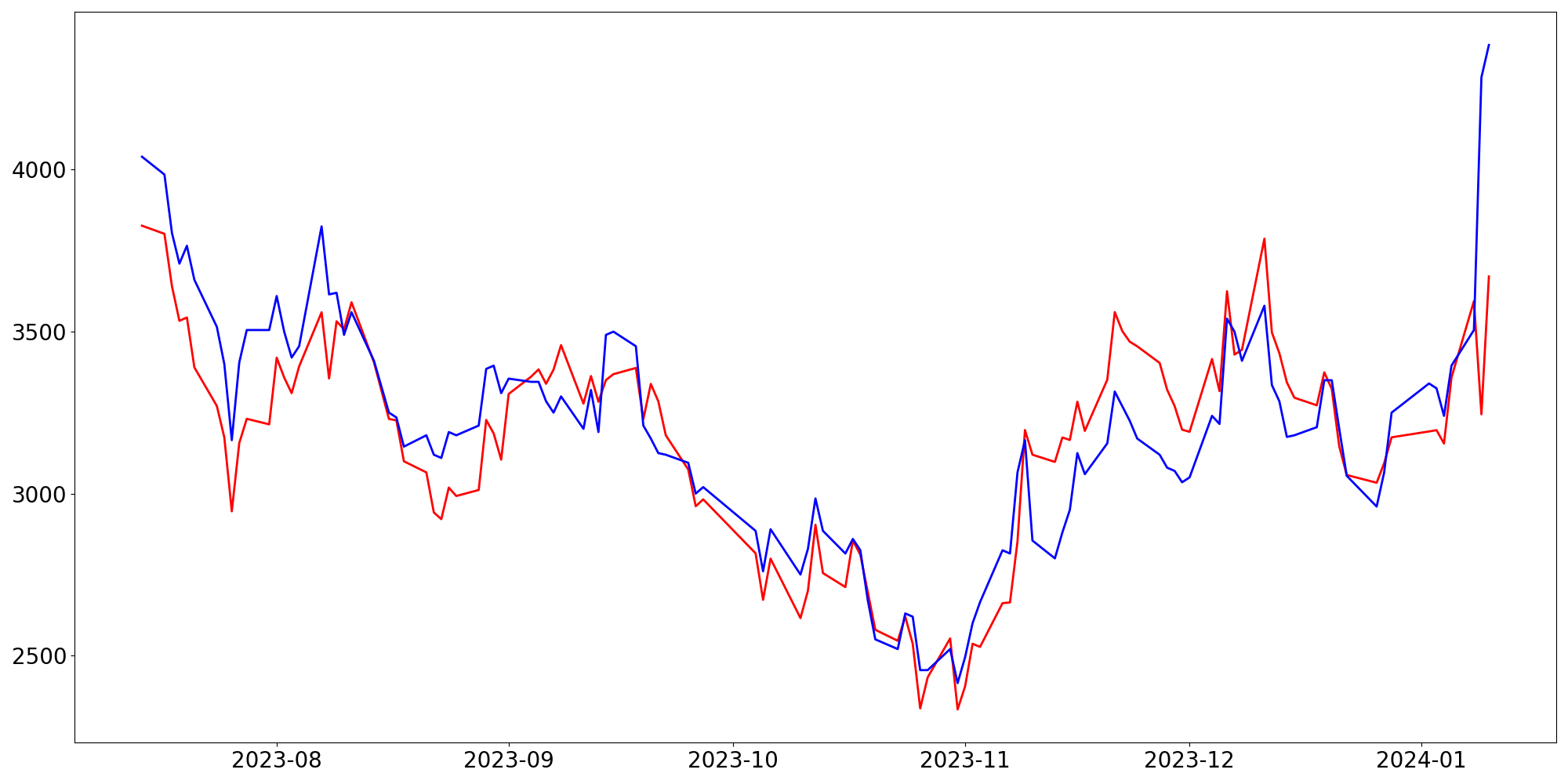 [ - : 실제값(종가) / - : 예측값(종가) ]