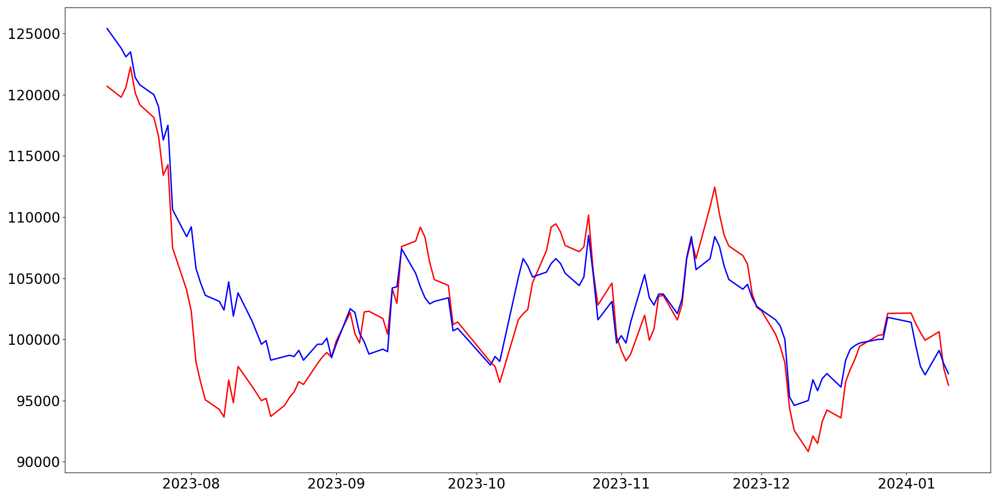 [ - : 실제값(종가) / - : 예측값(종가) ]