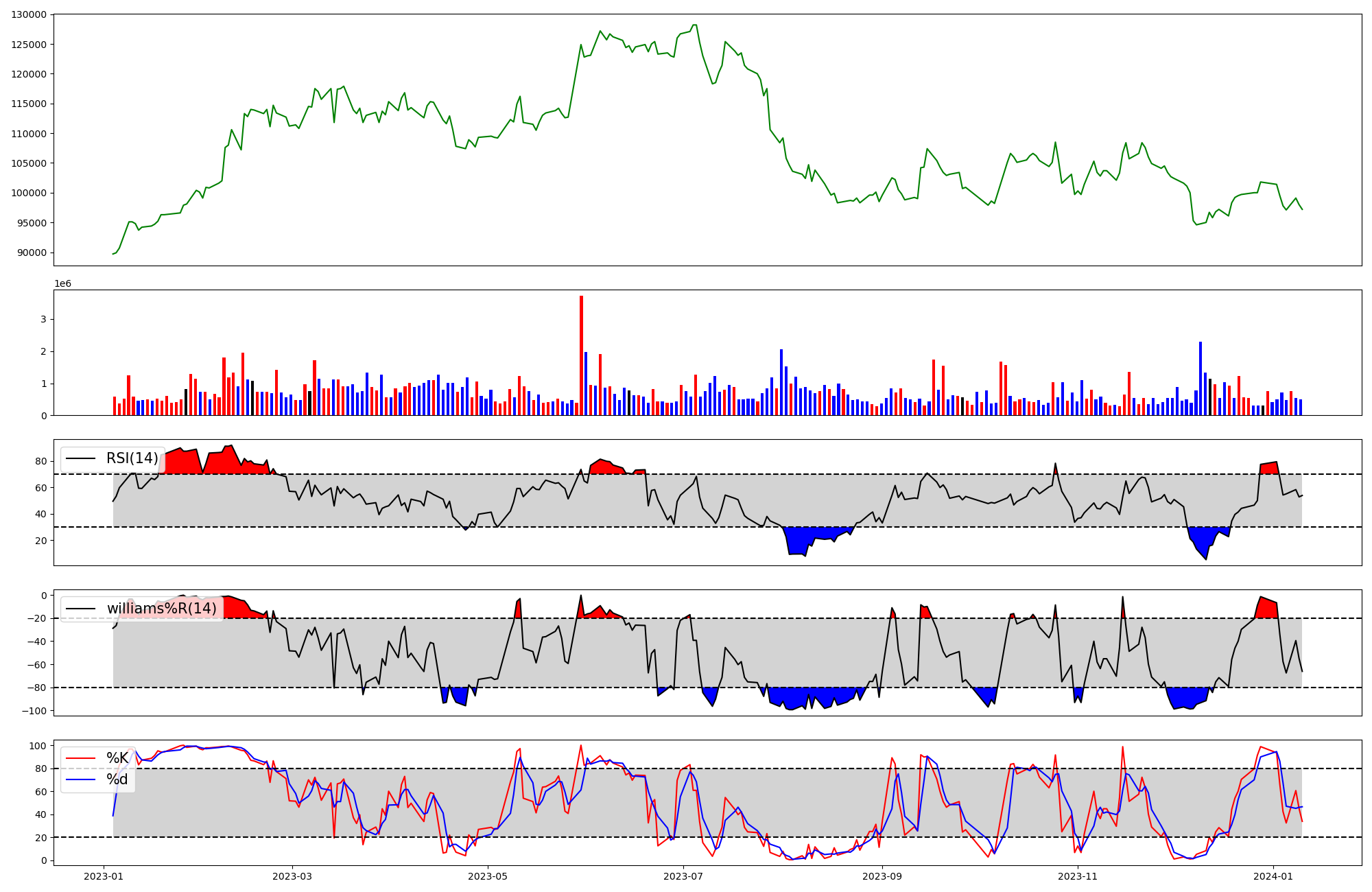 □ 중기 : 현재 종가가 중기(60일) 이동평균값(101,892원)을 하회 하여 중기적 추세 하락 중
