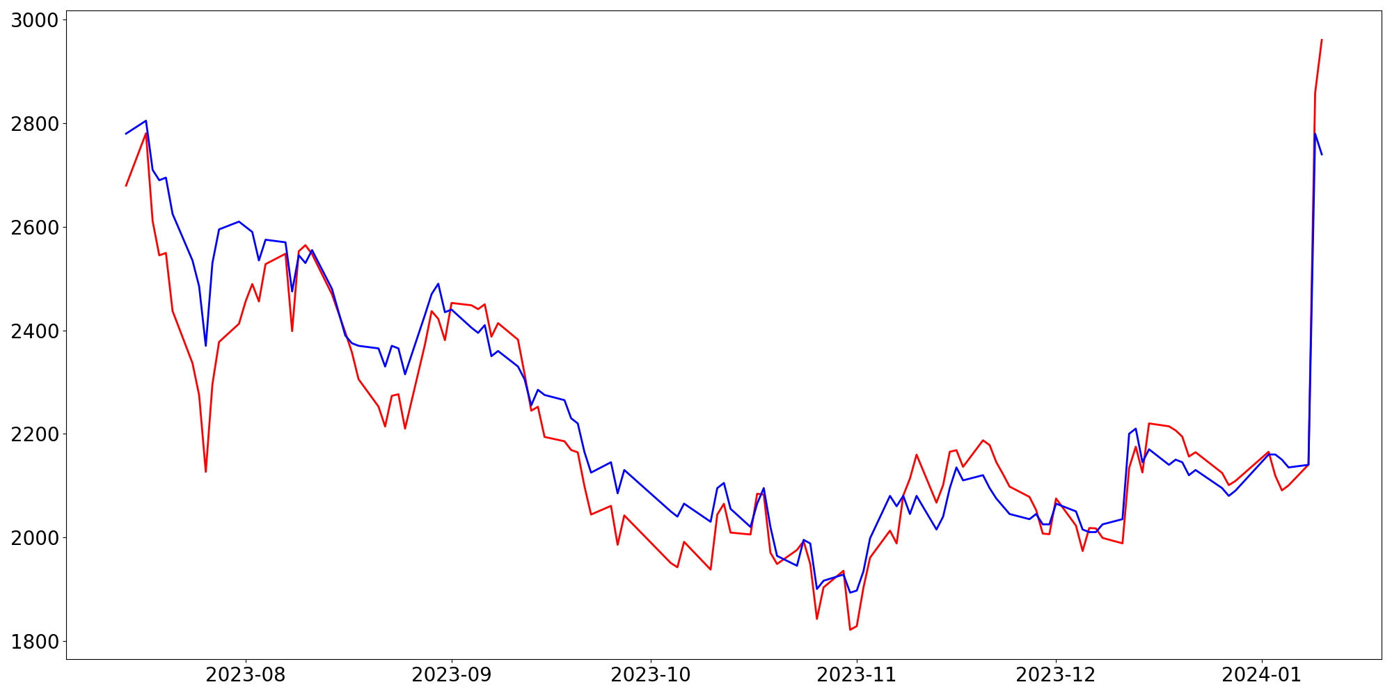 [ - : 실제값(종가) / - : 예측값(종가) ]