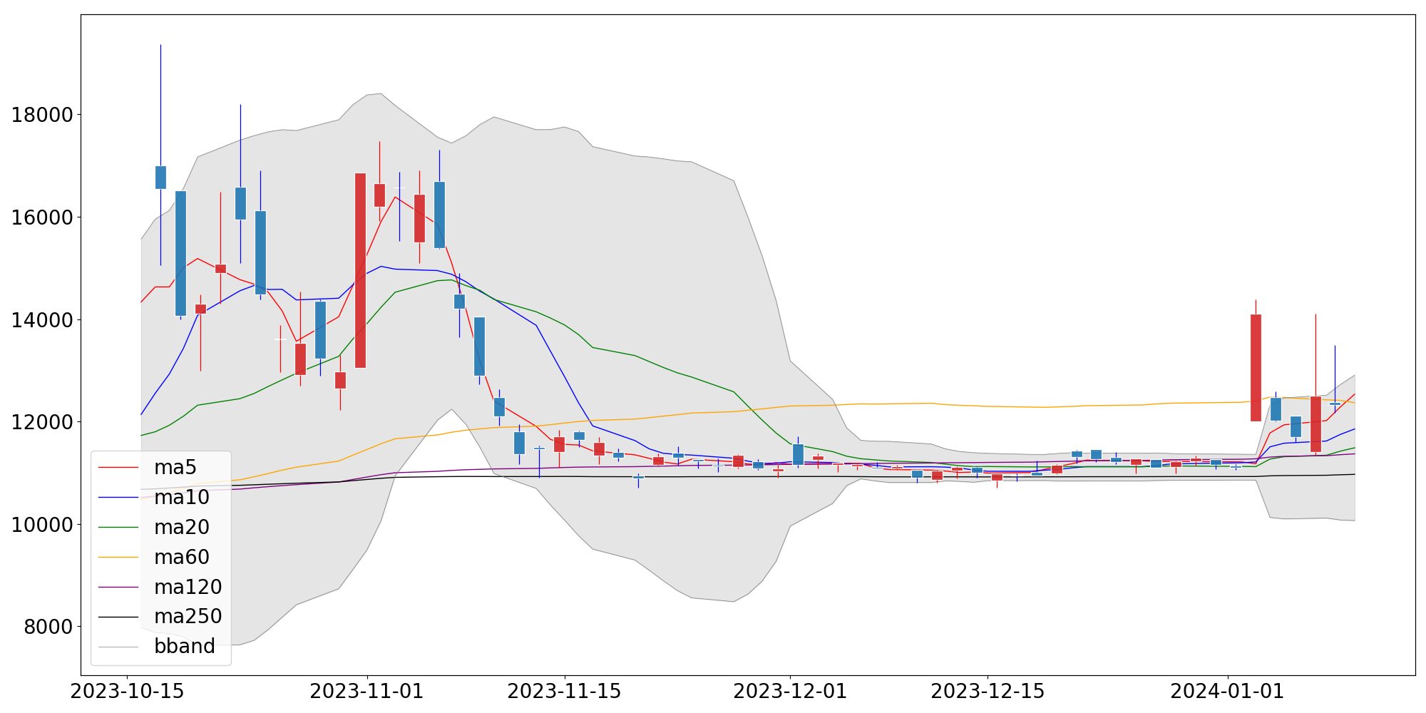 □ 중기 : 현재 종가가 중기(60일) 이동평균값(12,368원)을 하회 하여 중기적 추세 하락 중