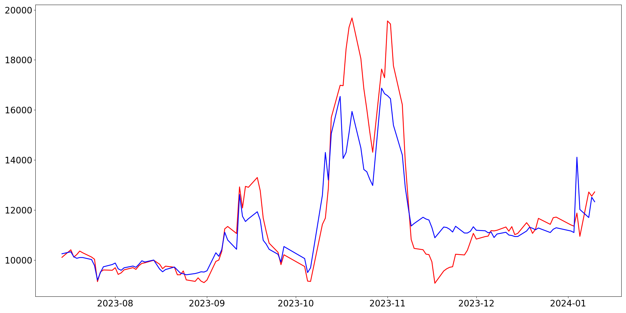 [ - : 실제값(종가) / - : 예측값(종가) ]