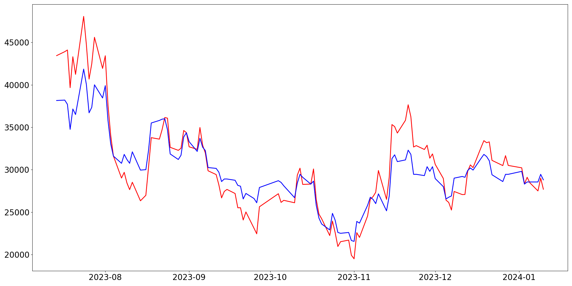 [ - : 실제값(종가) / - : 예측값(종가) ]