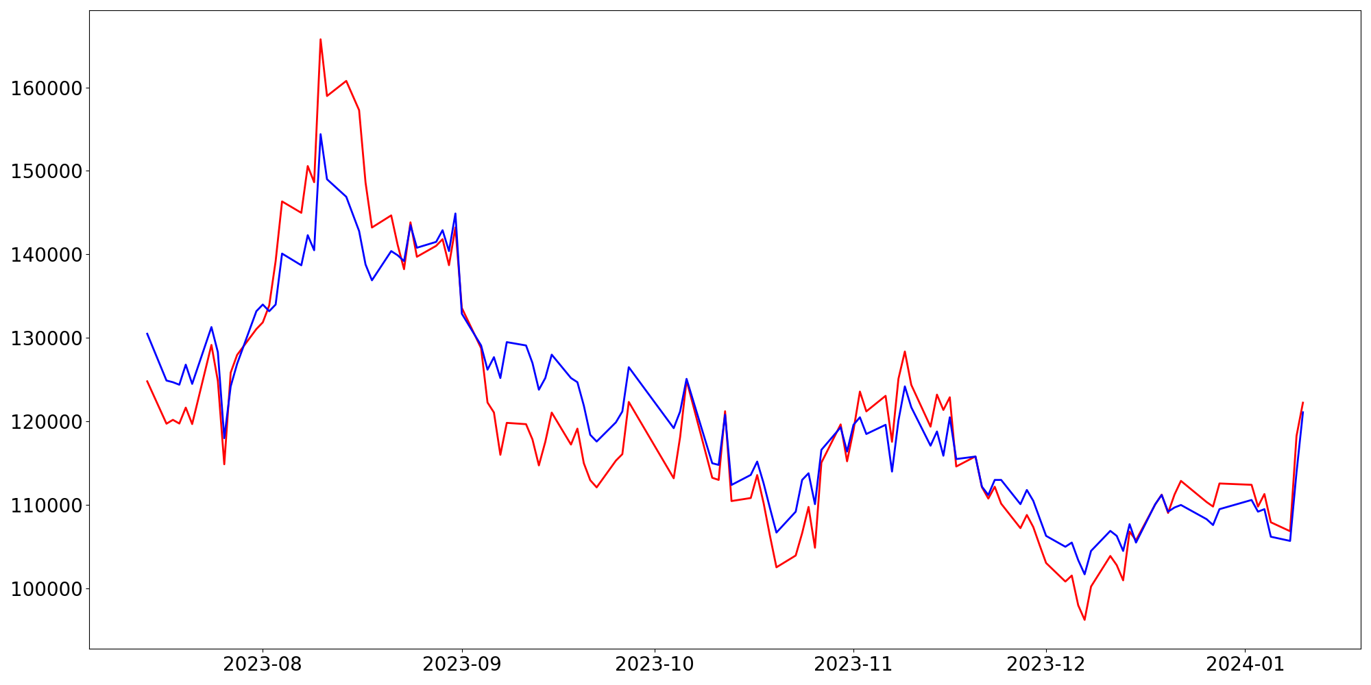 [ - : 실제값(종가) / - : 예측값(종가) ]