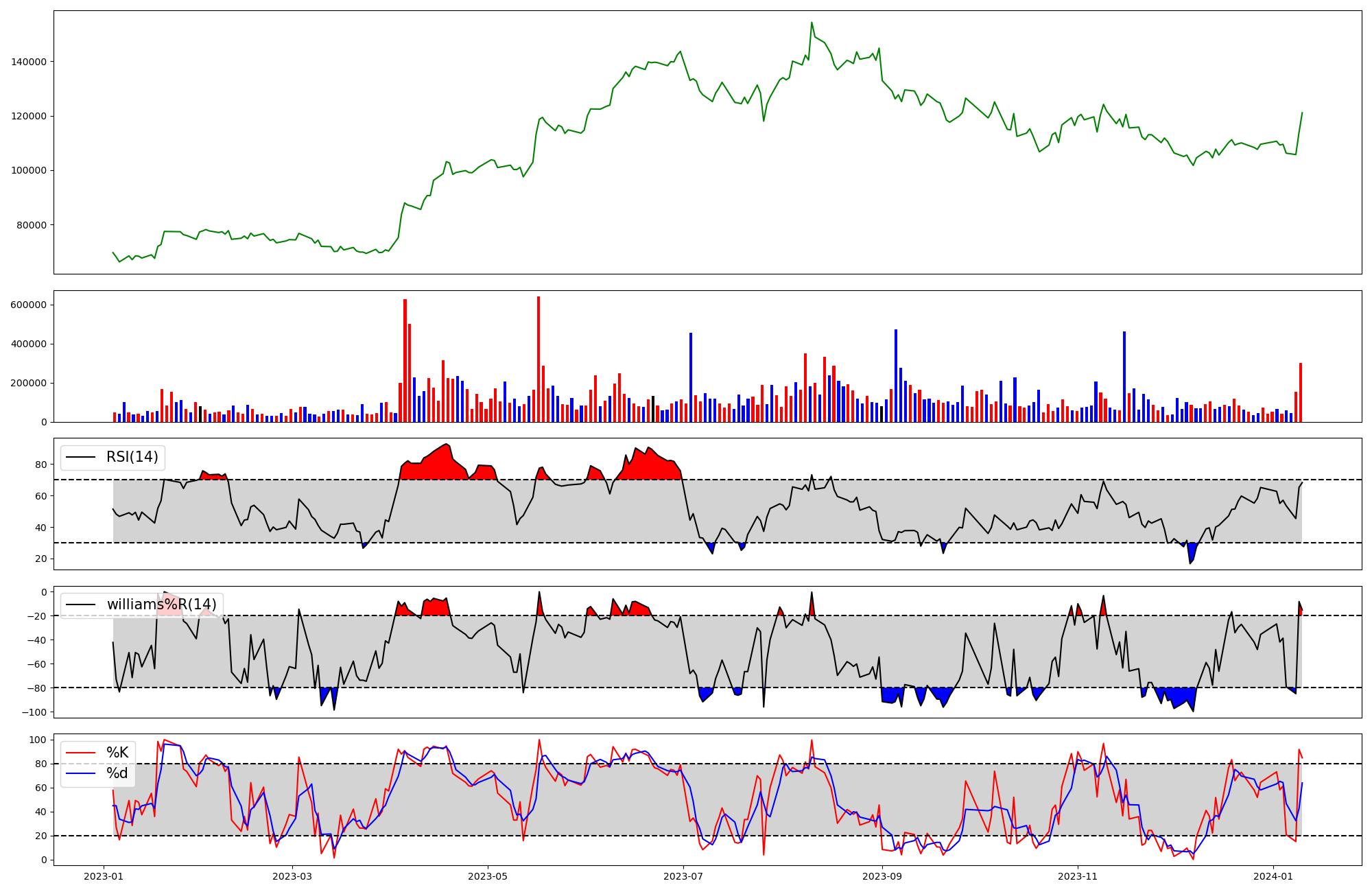 □ 중기 : 현재 종가가 중기(60일) 이동평균값(111,953원)을 상회 하여 중기적 추세 상승 중
