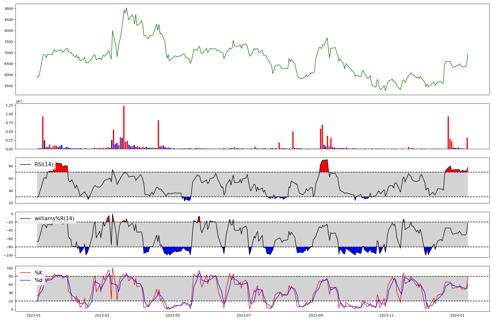 RSI | Williams %R | stochastic(%K) | |