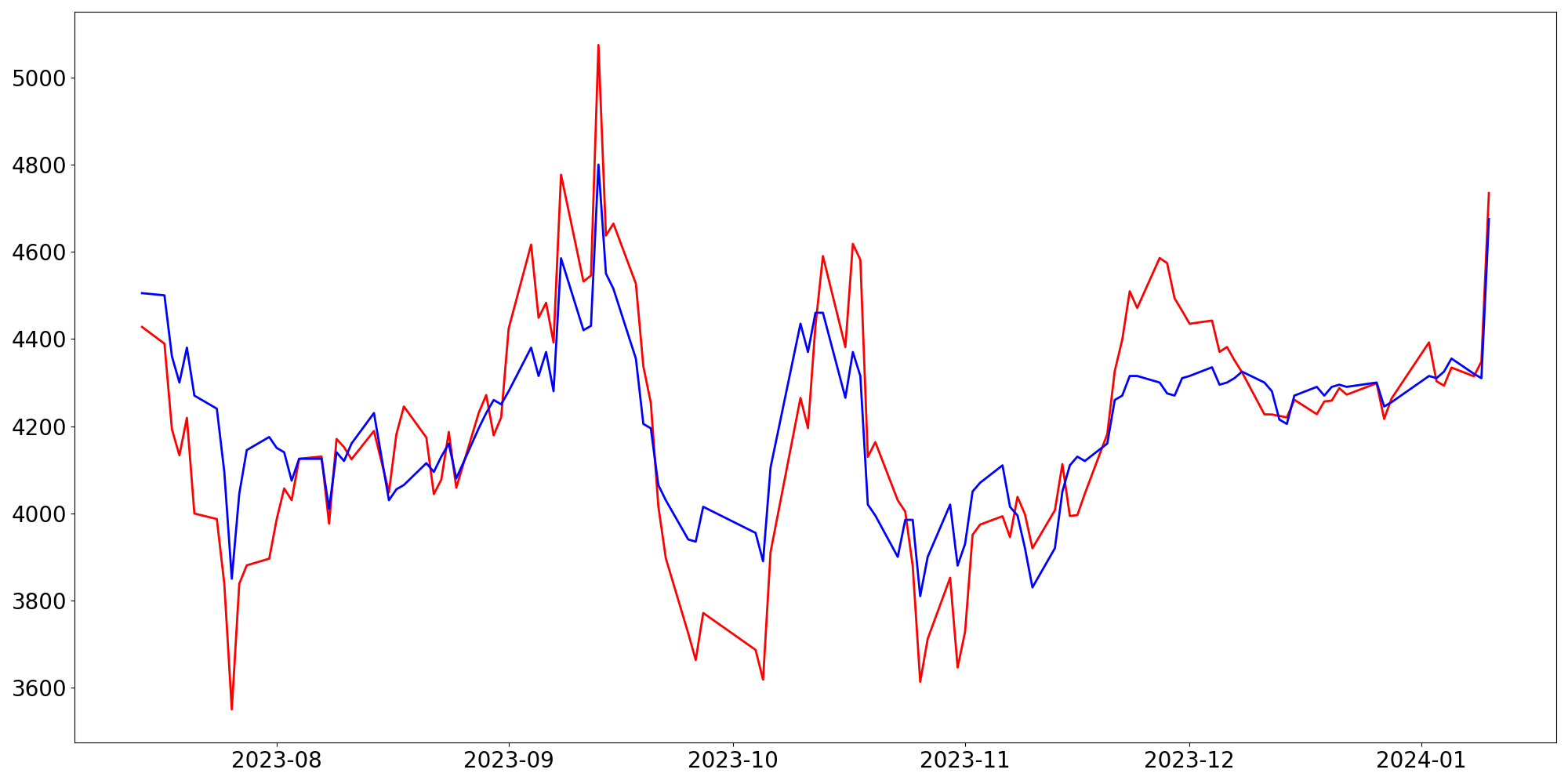 [ - : 실제값(종가) / - : 예측값(종가) ]