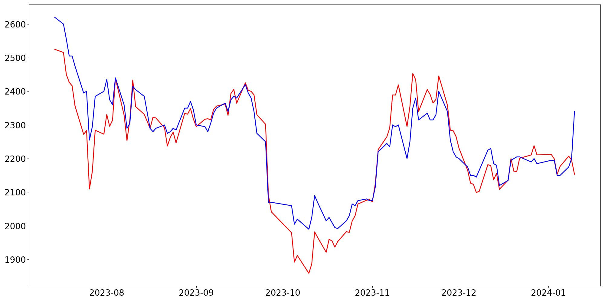 [ - : 실제값(종가) / - : 예측값(종가) ]