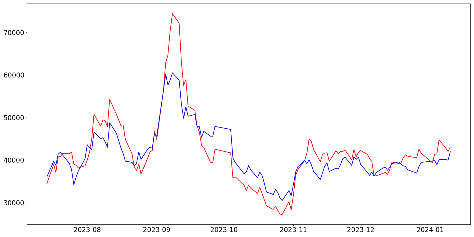 [ - : 실제값(종가) / - : 예측값(종가) ]