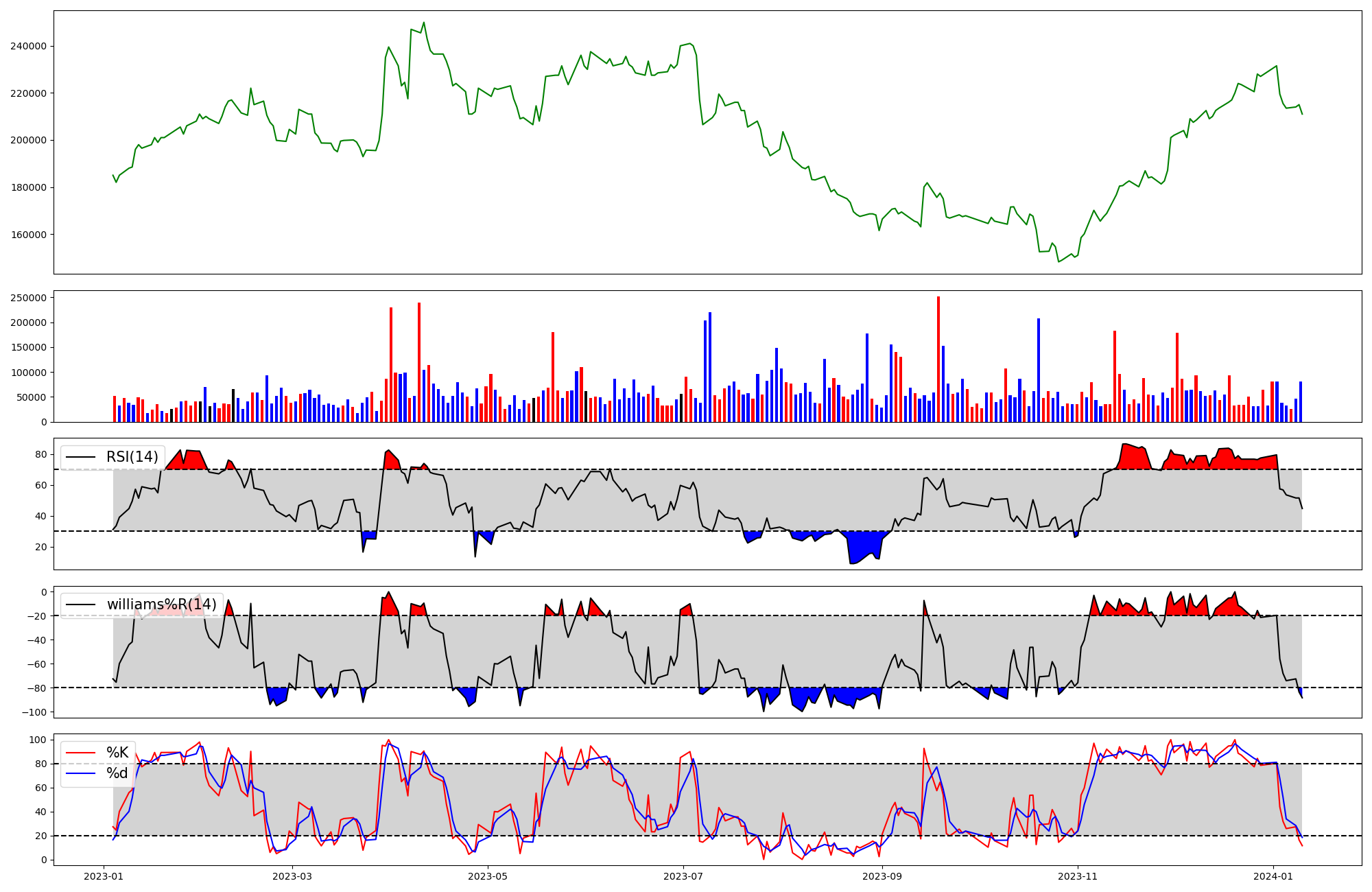 RSI | Williams %R | stochastic(%K) | |