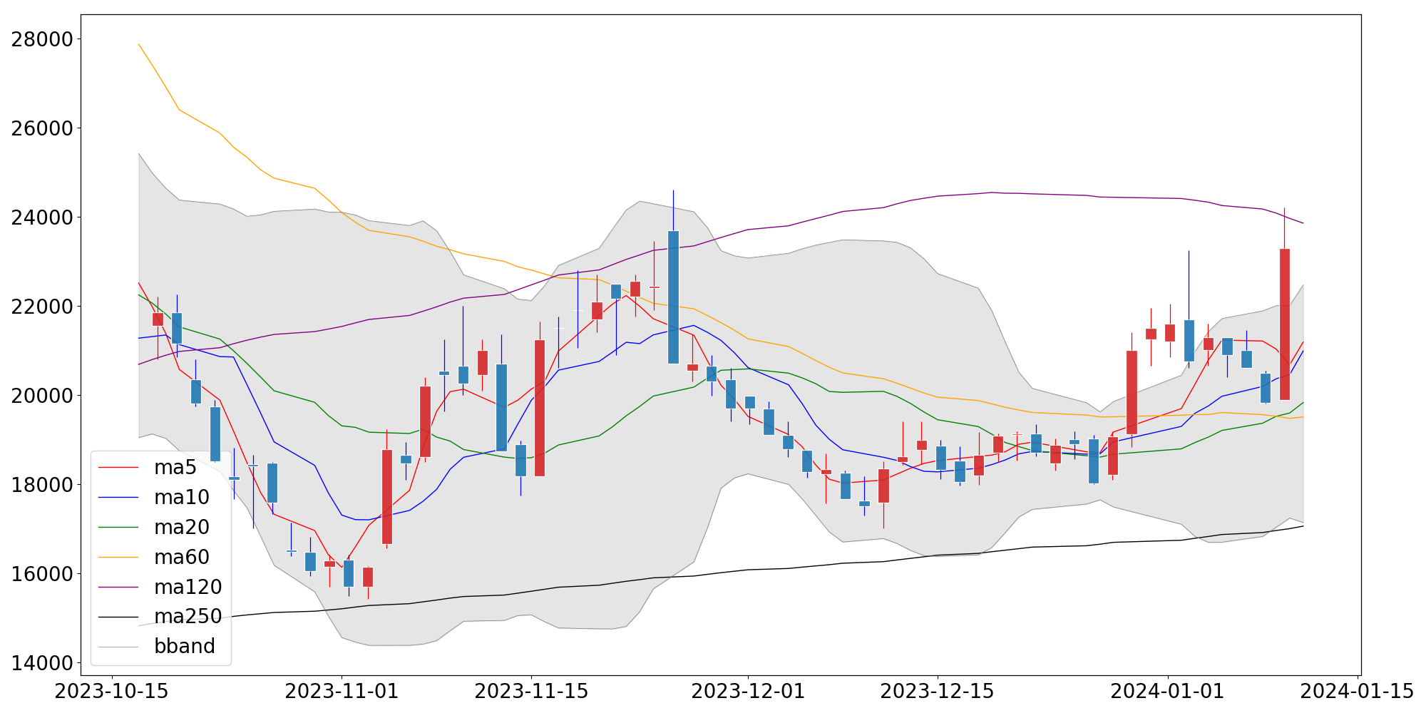 □ 오늘의 종가 : 23,300 (+3,470, +17.50%)