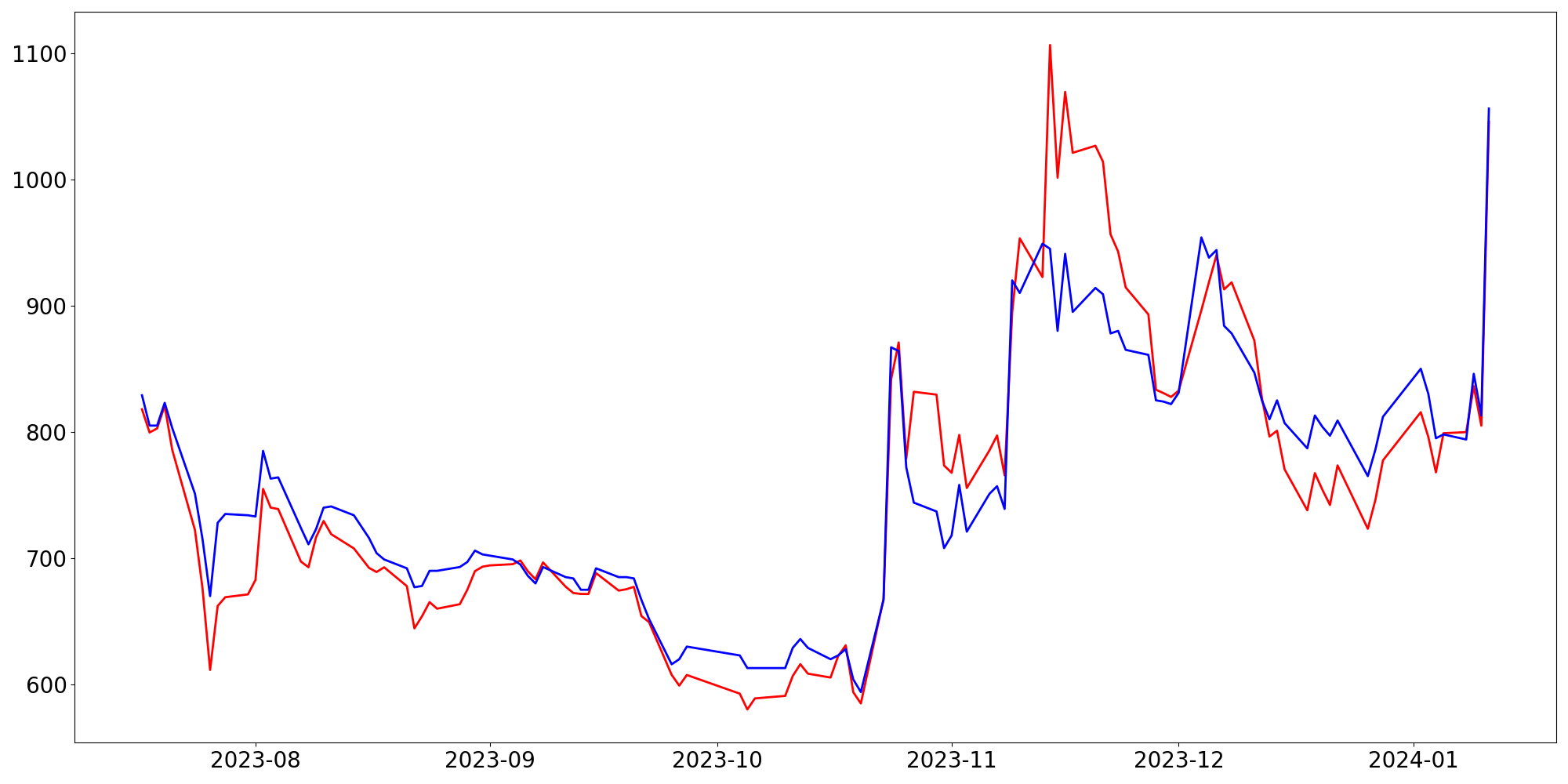 [ - : 실제값(종가) / - : 예측값(종가) ]