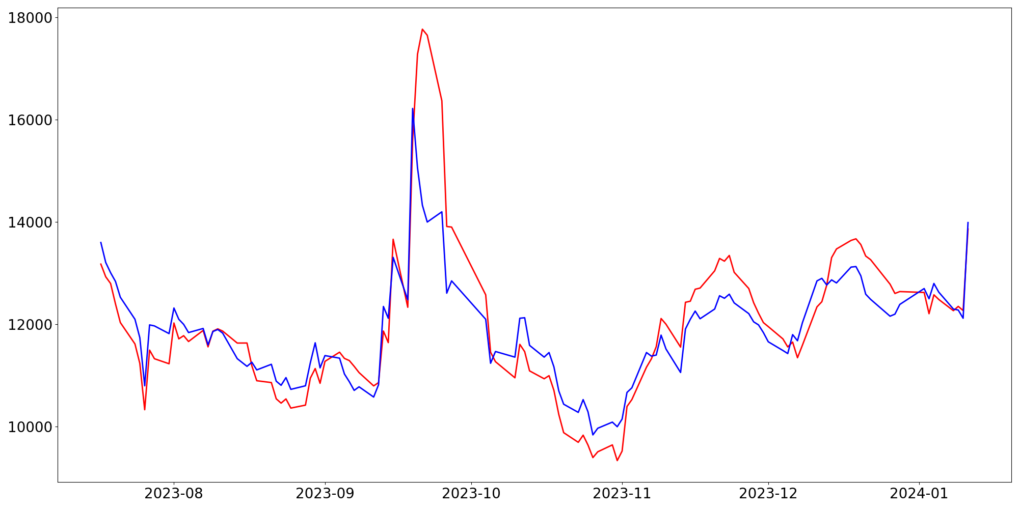 [ - : 실제값(종가) / - : 예측값(종가) ]
