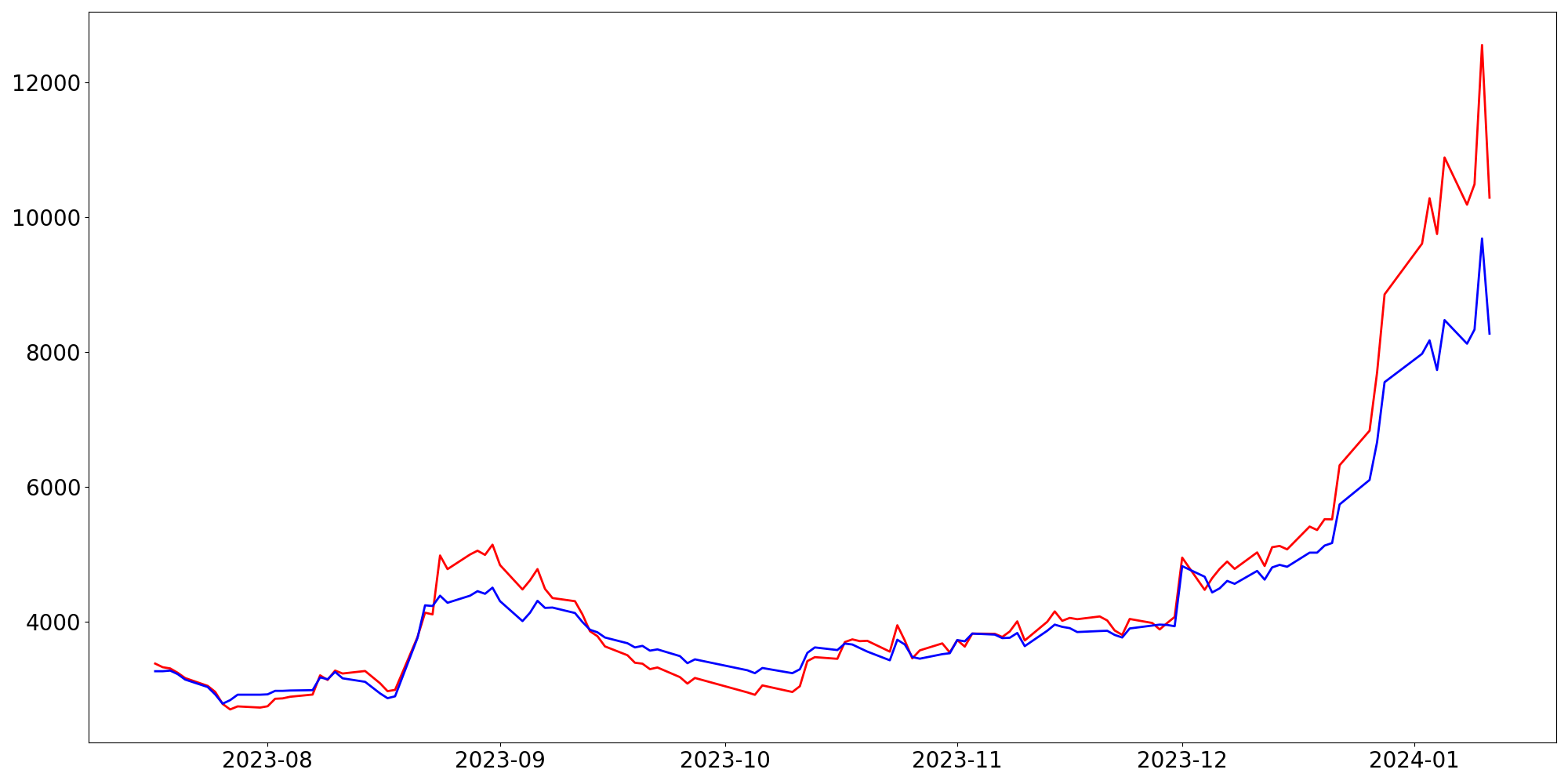 [ - : 실제값(종가) / - : 예측값(종가) ]