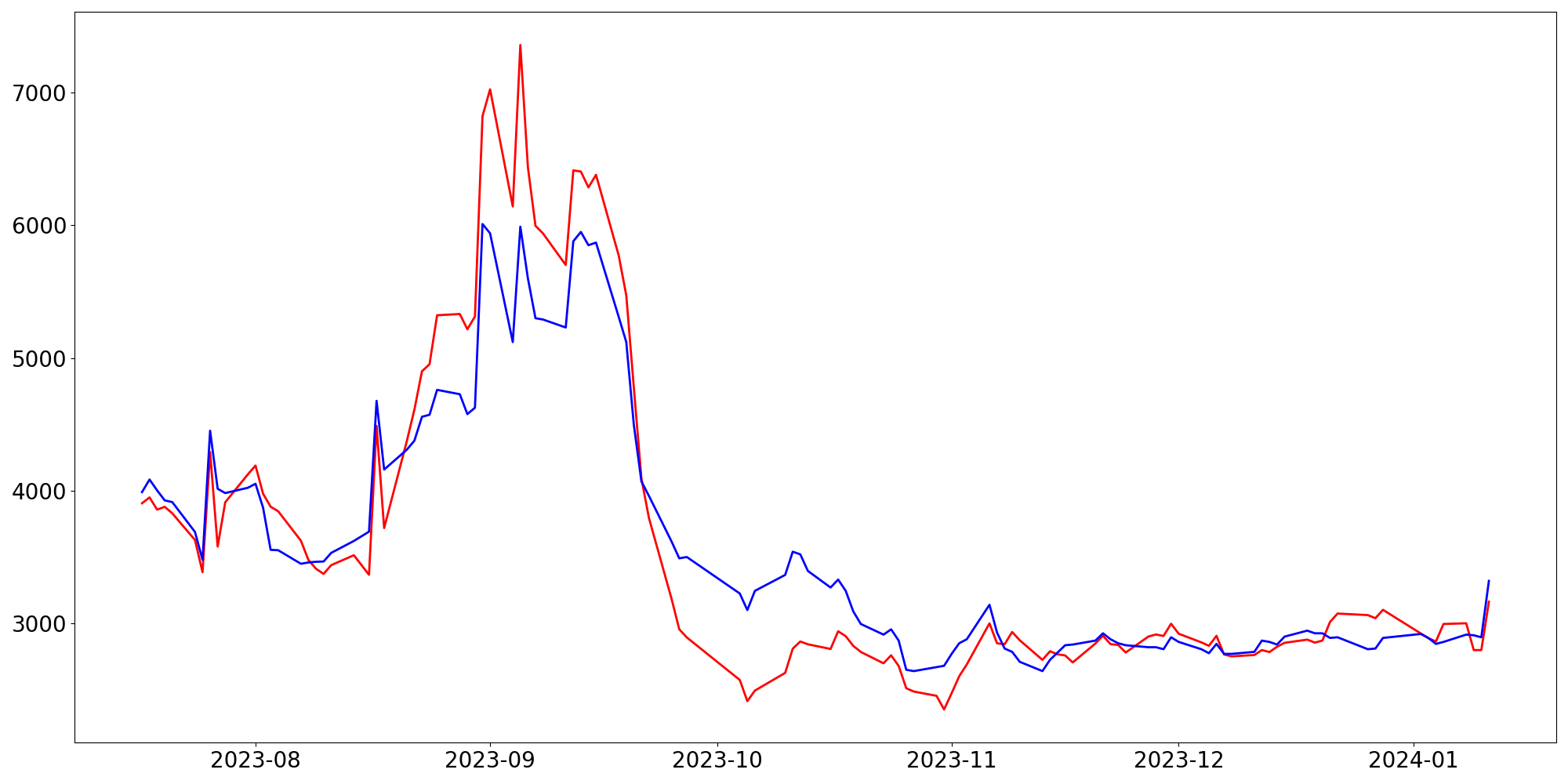[ - : 실제값(종가) / - : 예측값(종가) ]