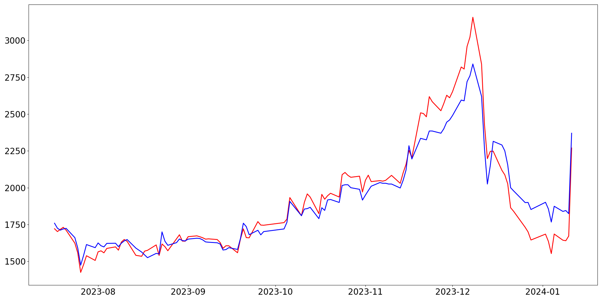 [ - : 실제값(종가) / - : 예측값(종가) ]