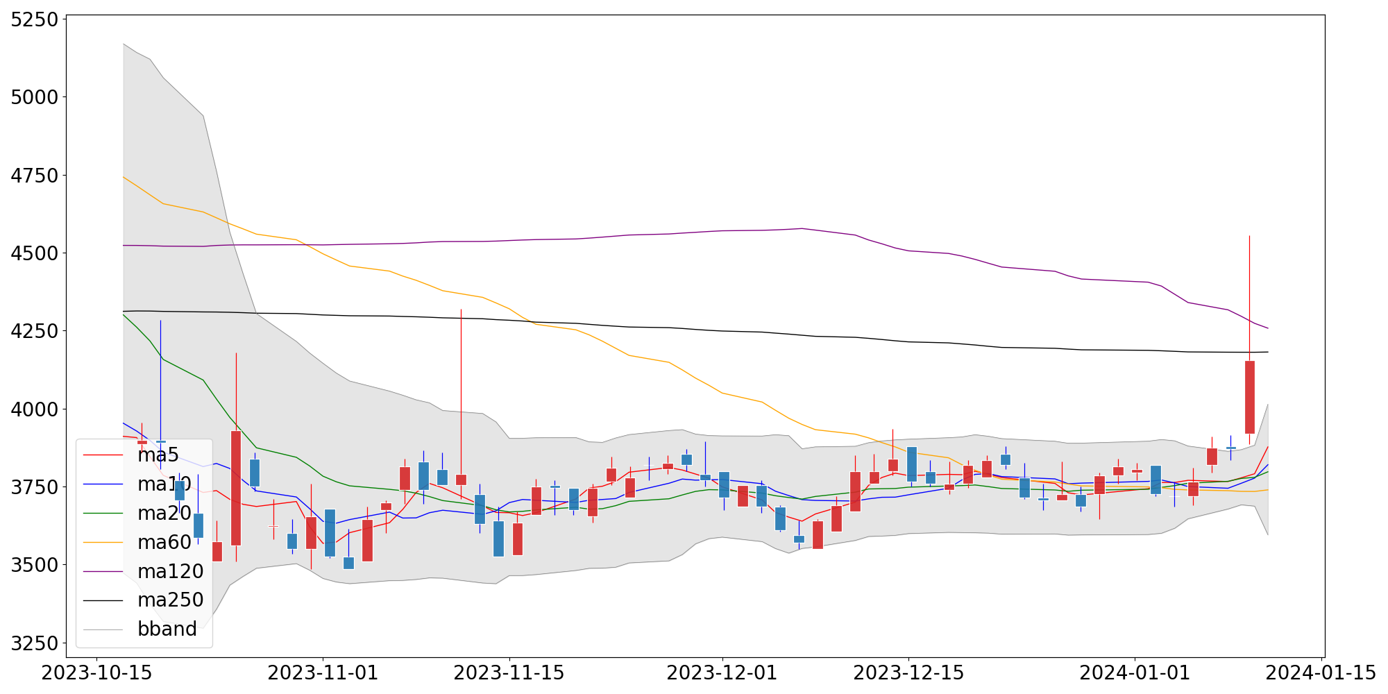 단순이동평균 | 3,877.00 | 3,820.00 | 3,797.25 |