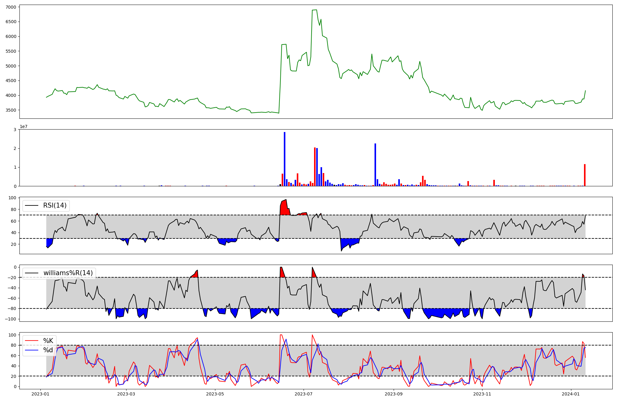 RSI | Williams %R | stochastic(%K) | |