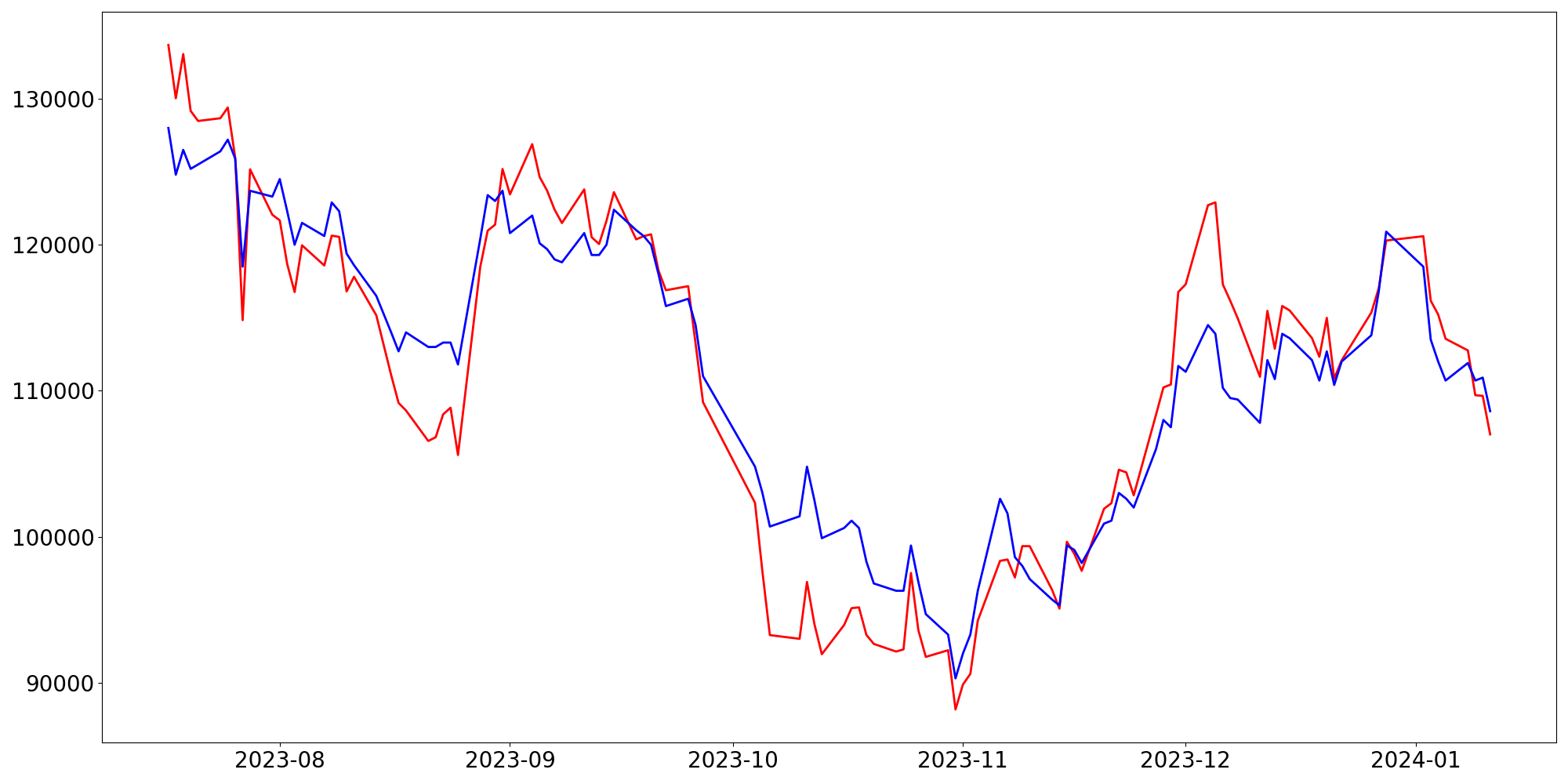 [ - : 실제값(종가) / - : 예측값(종가) ]