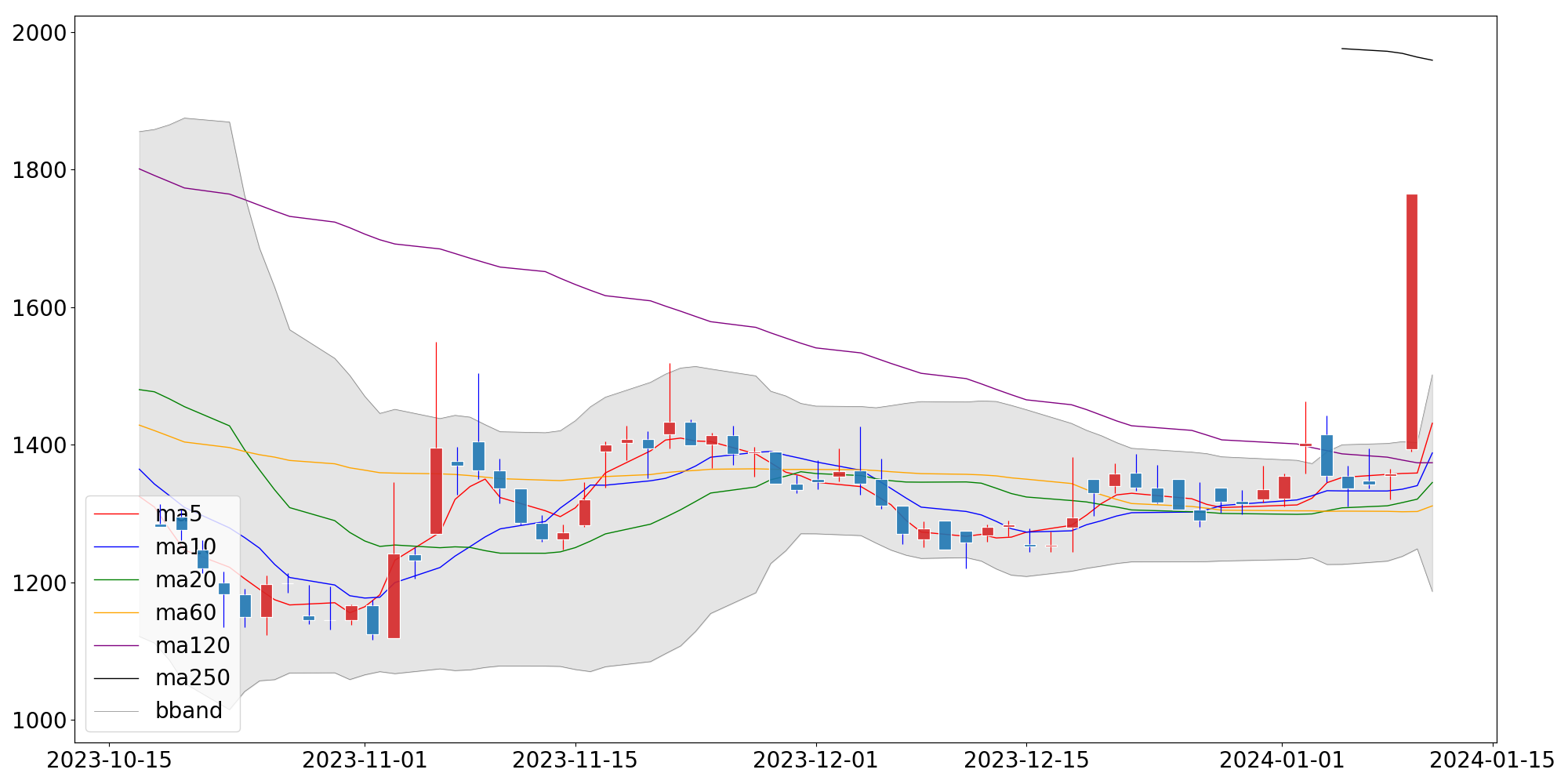 □ 오늘의 종가 : 1,765 (+407, +29.97%)