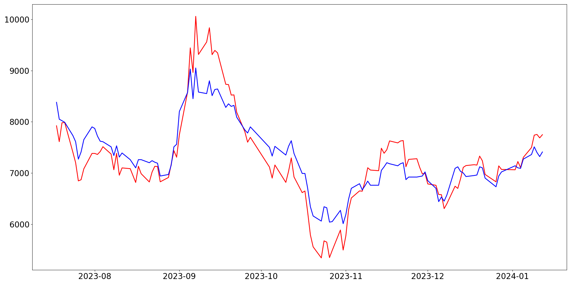 [ - : 실제값(종가) / - : 예측값(종가) ]