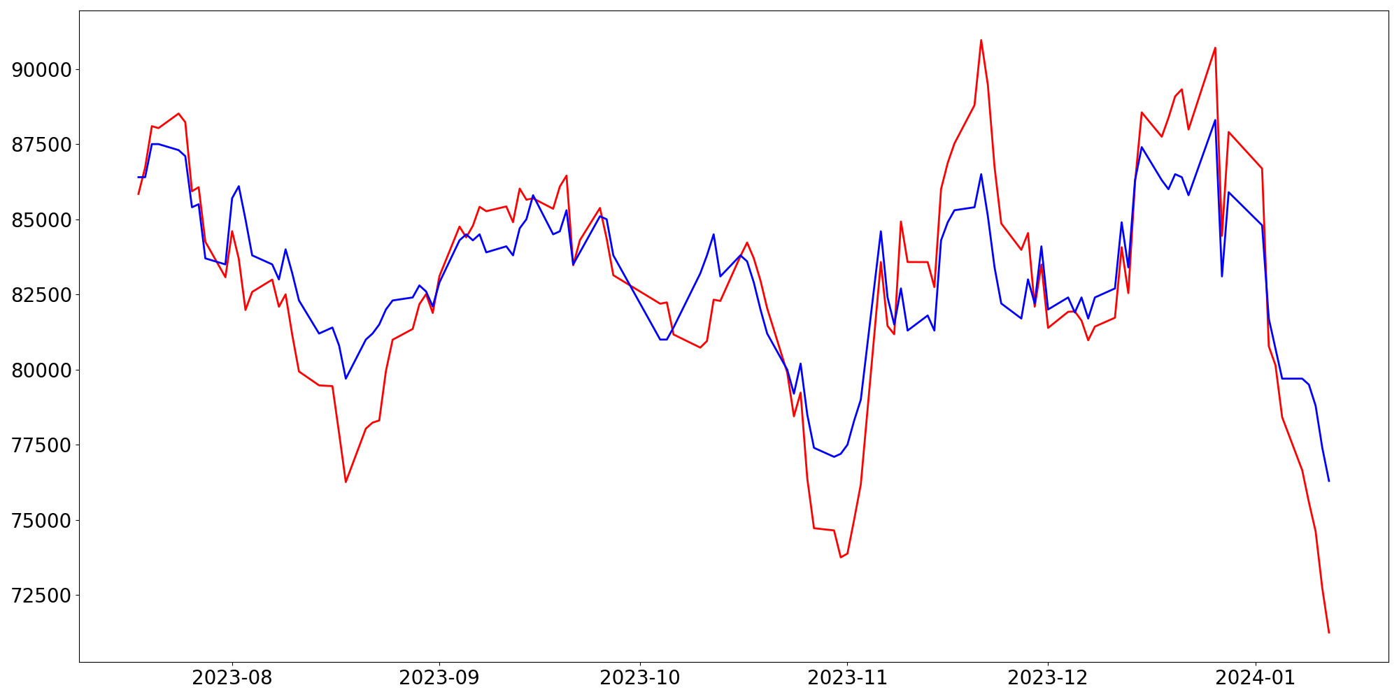 [ - : 실제값(종가) / - : 예측값(종가) ]