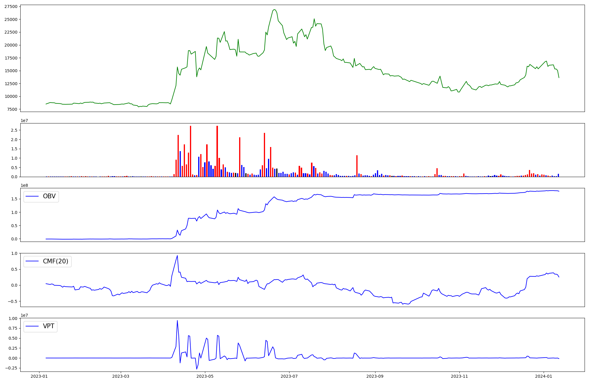 | OBV | CMF | VPT | |