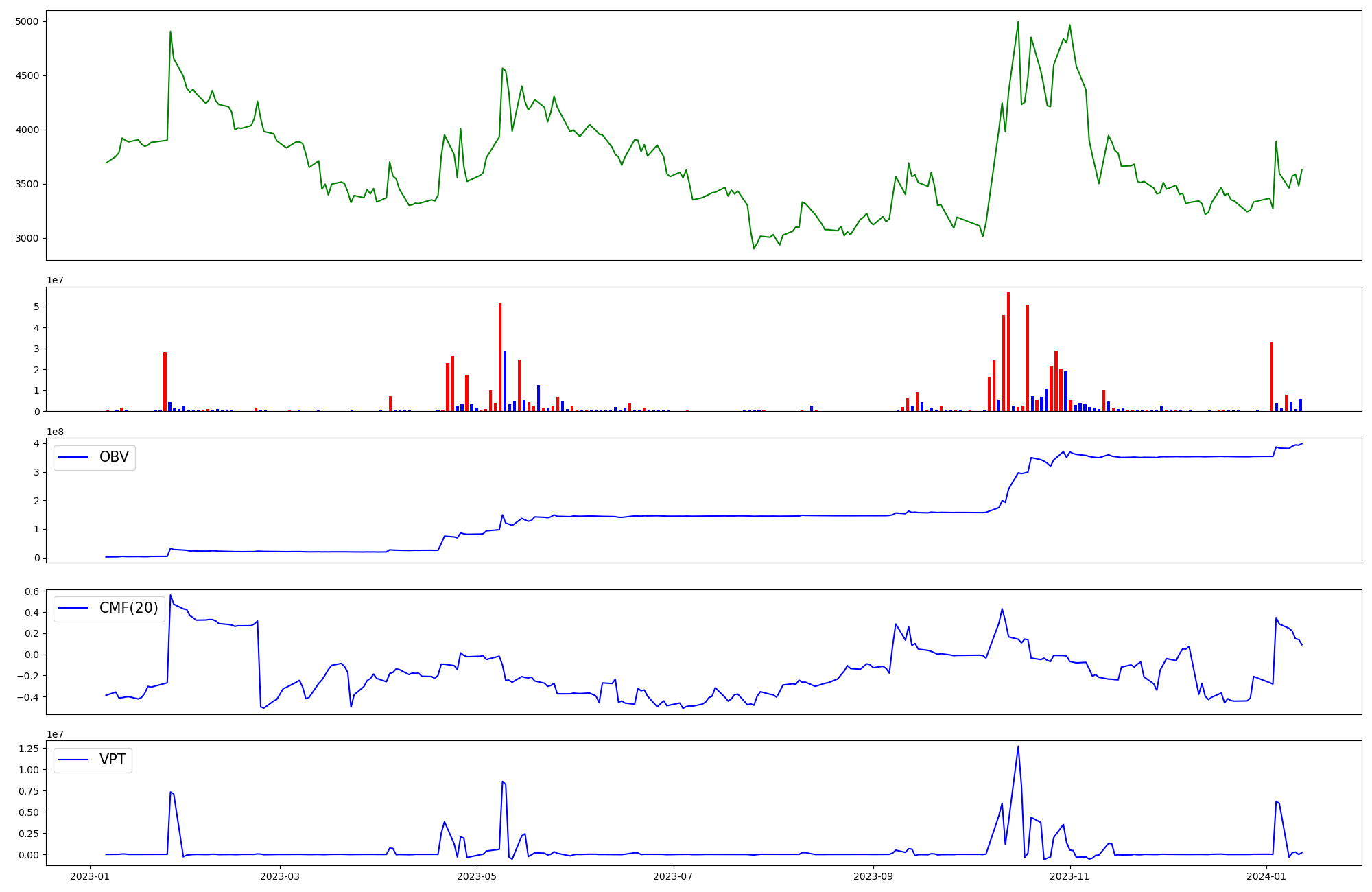 | OBV | CMF | VPT | |
