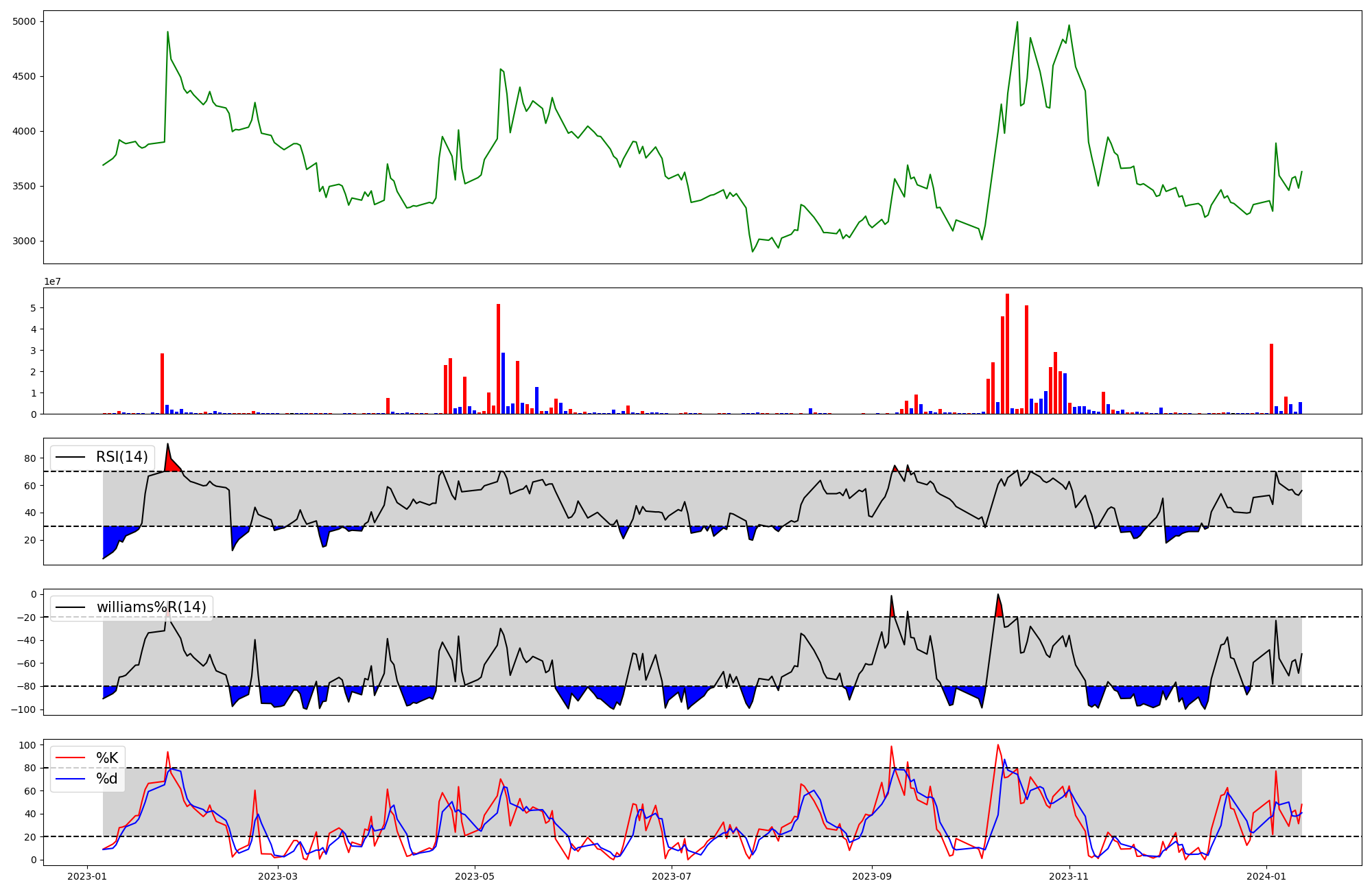 | RSI | Williams %R | stochastic(%K) | |