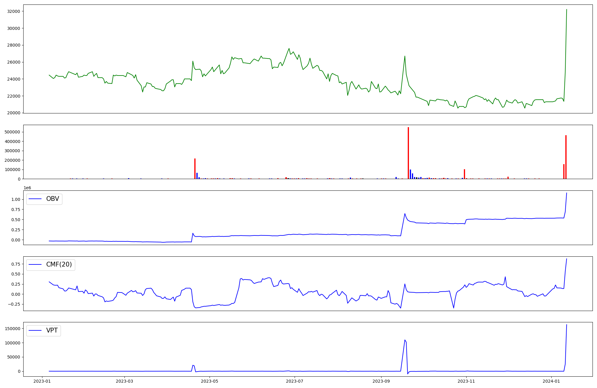 | OBV | CMF | VPT | |