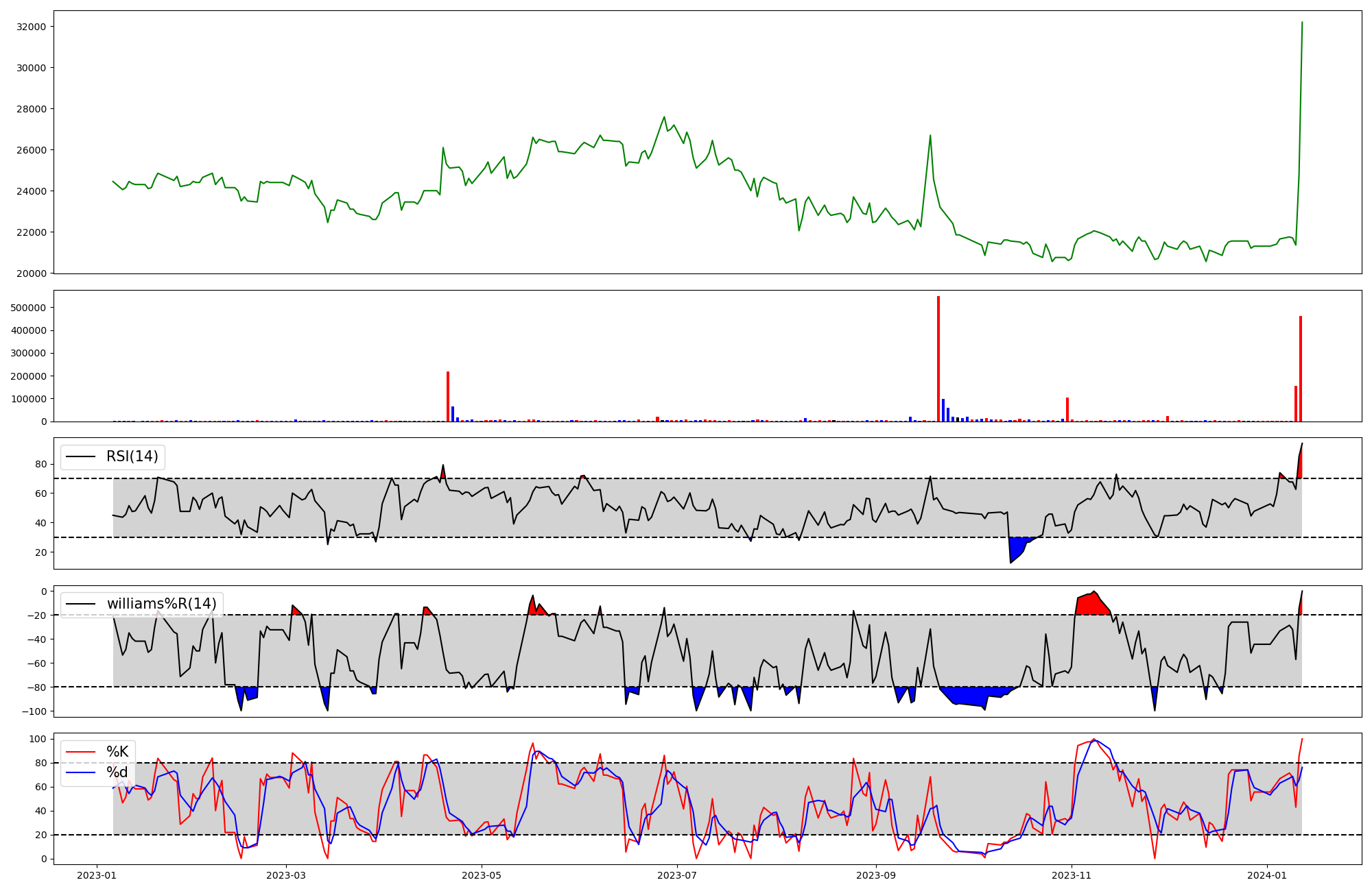 | RSI | Williams %R | stochastic(%K) | |