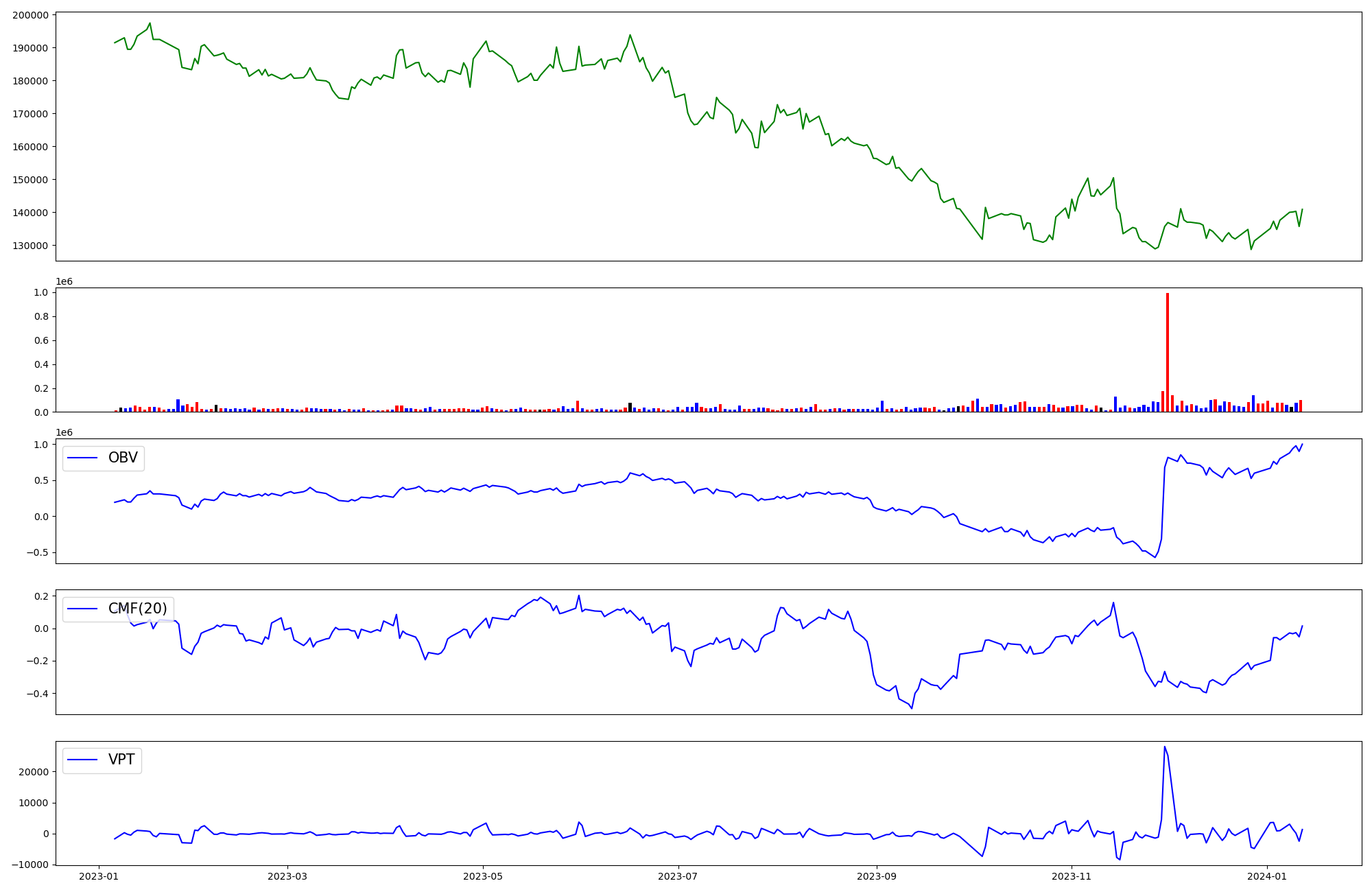| OBV | CMF | VPT | |