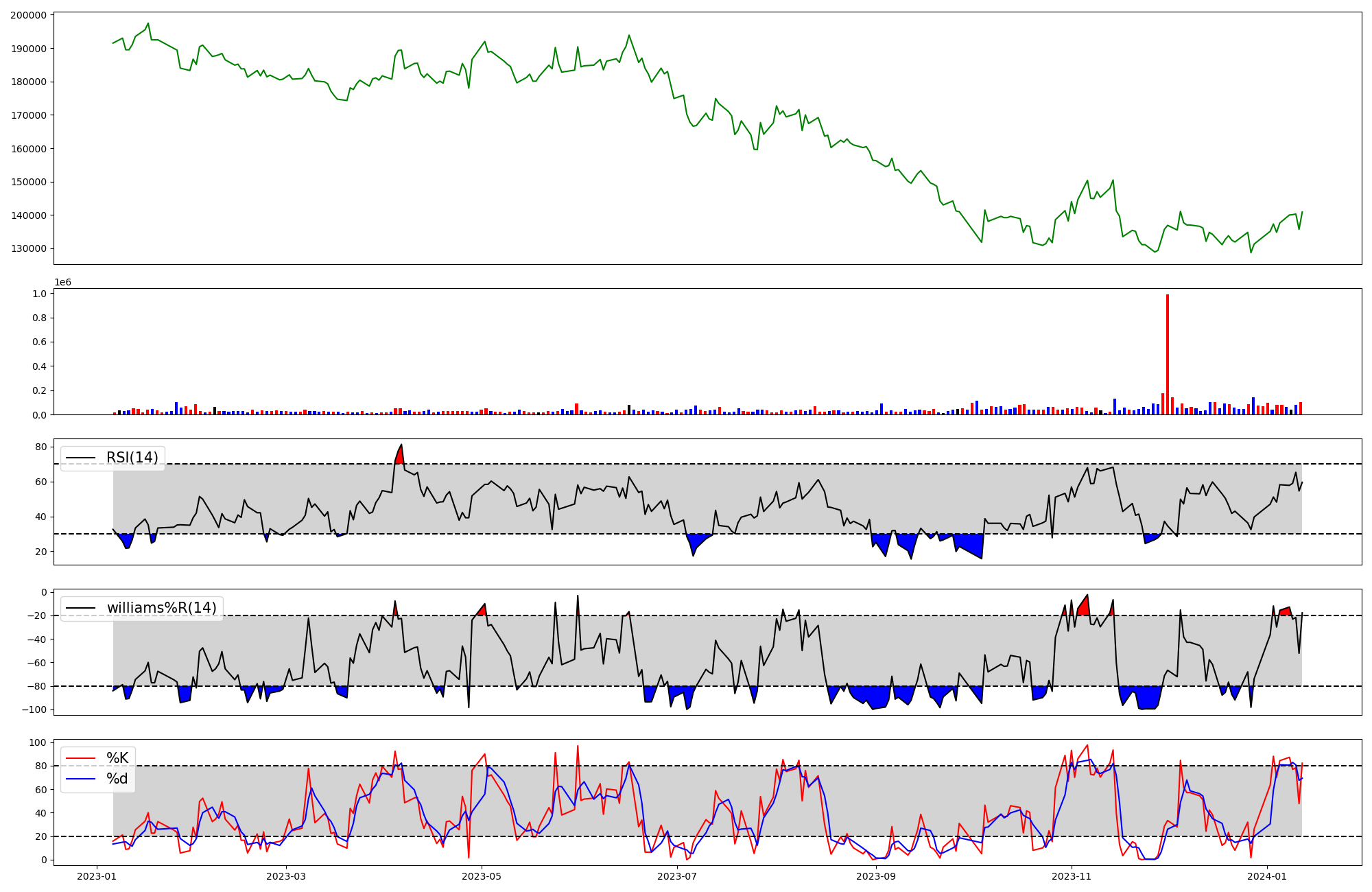 | RSI | Williams %R | stochastic(%K) | |