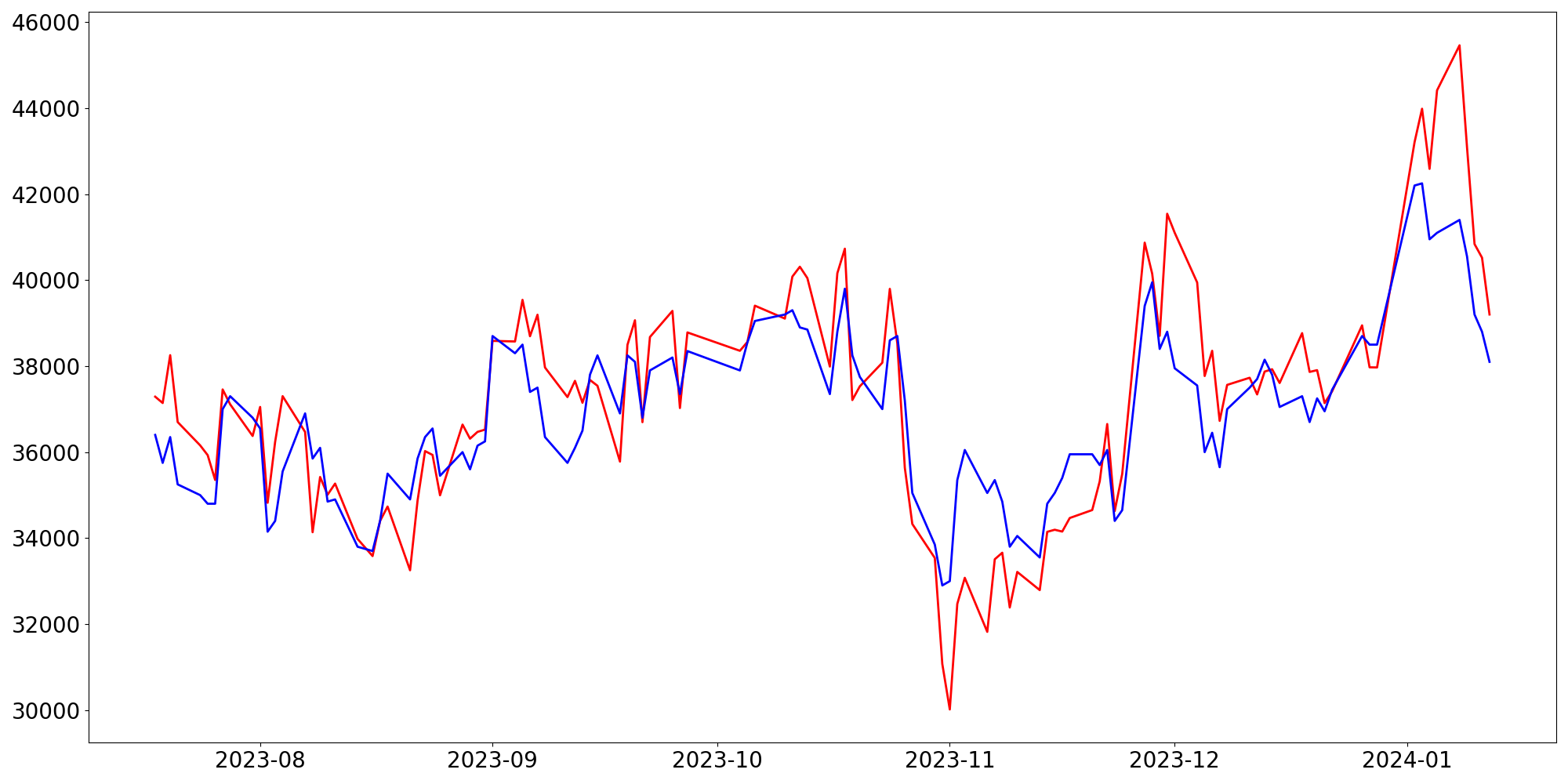 [ - : 실제값(종가) / - : 예측값(종가) ]