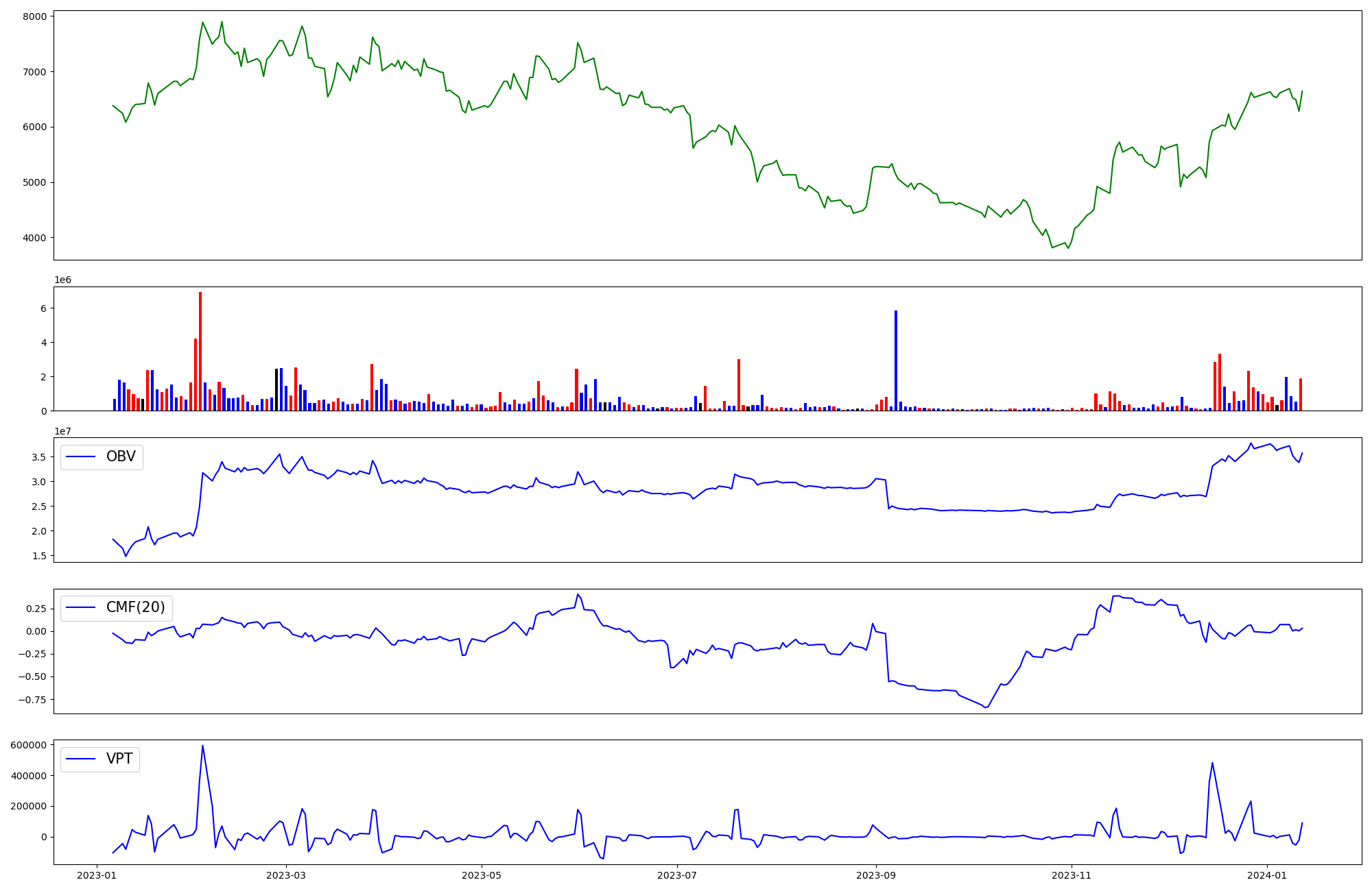 | OBV | CMF | VPT | |