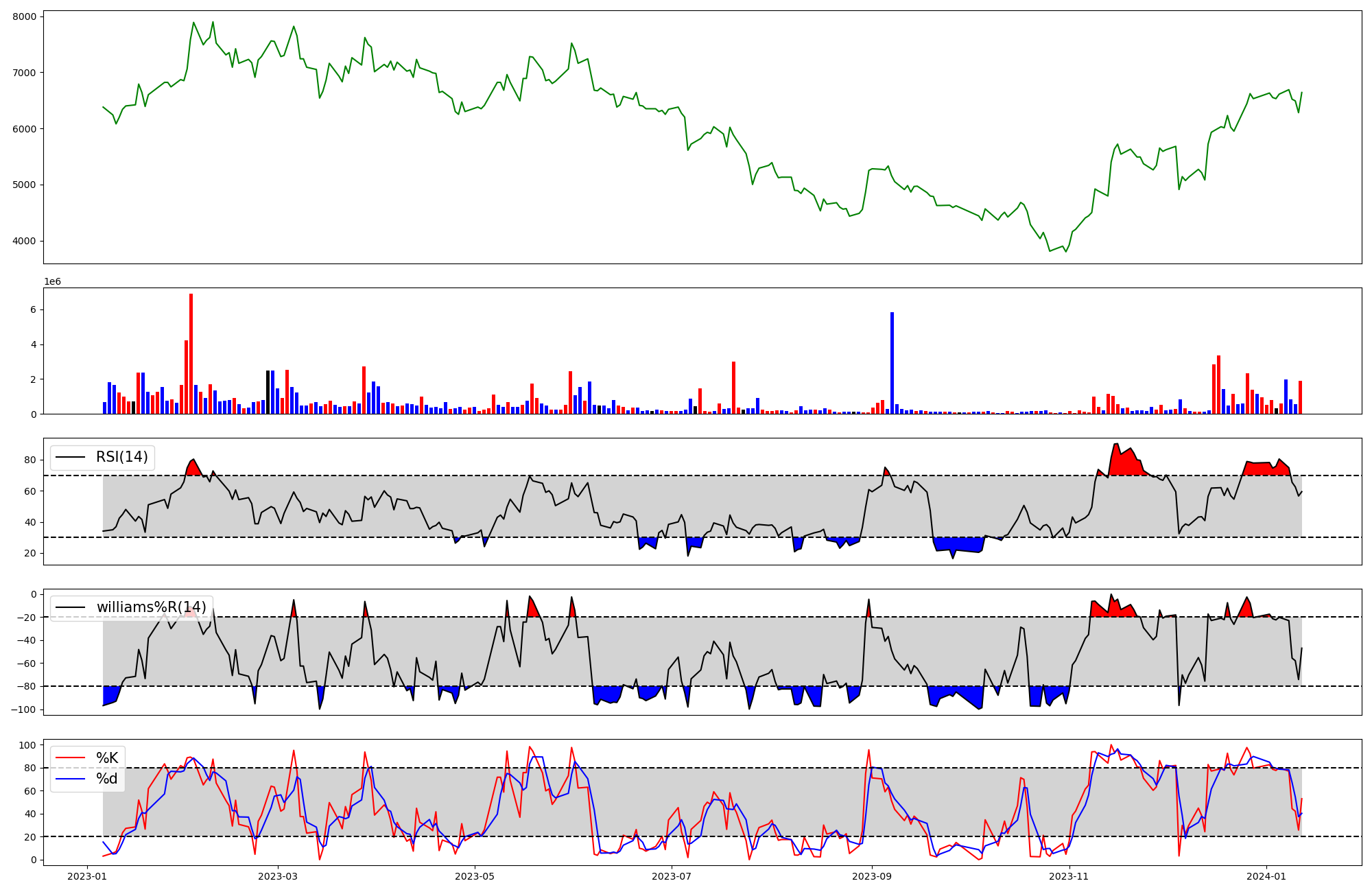 | RSI | Williams %R | stochastic(%K) | |