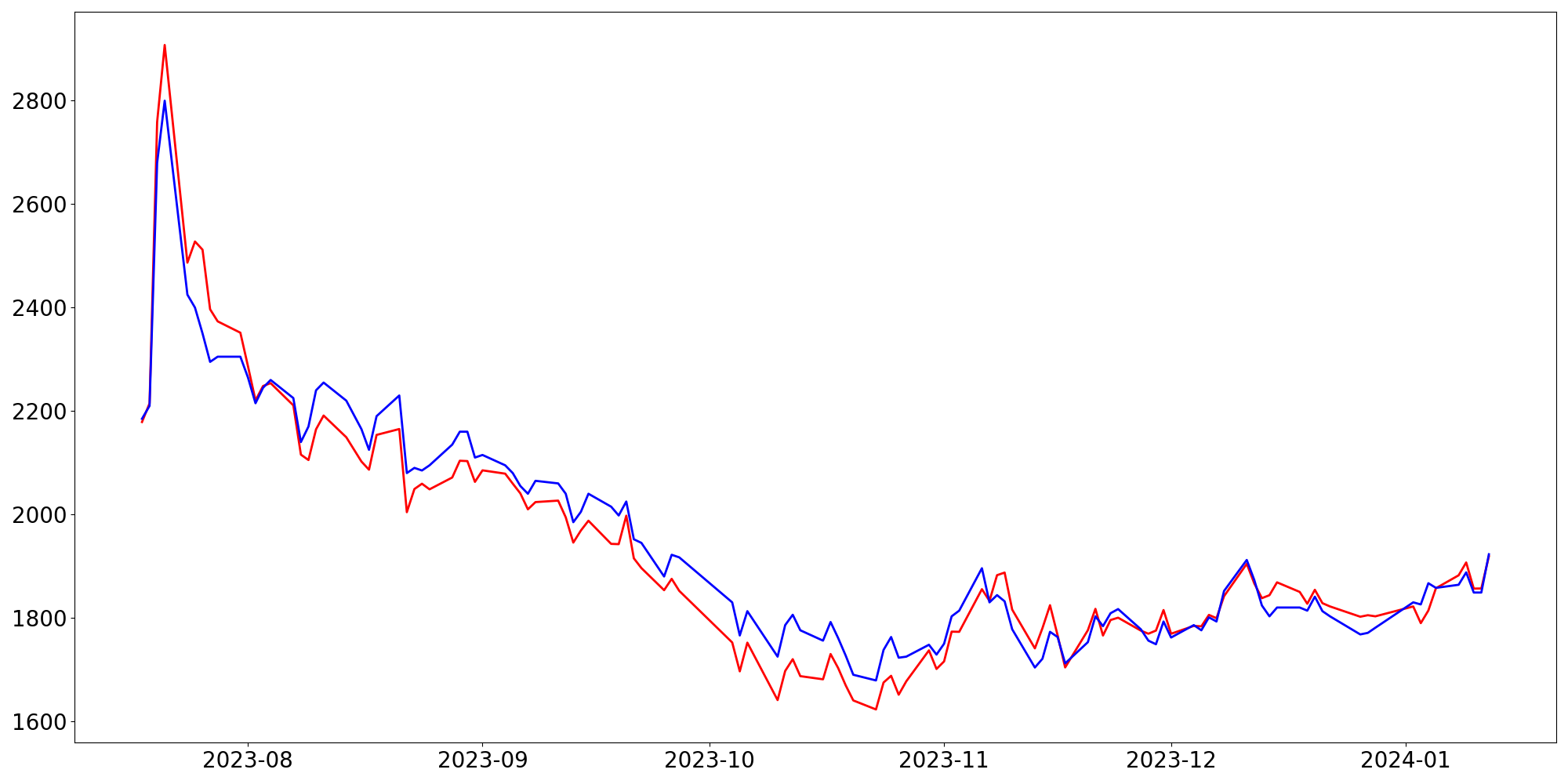 [ - : 실제값(종가) / - : 예측값(종가) ]