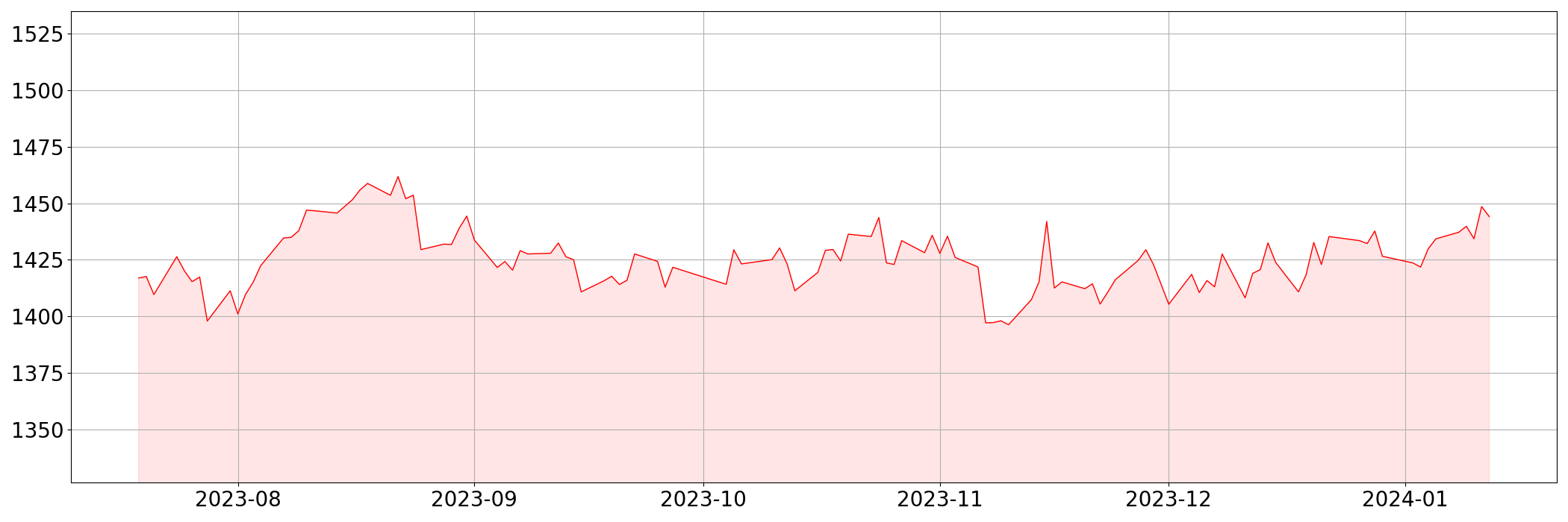 | 현재 | 1,444.11 | -4.44 | -0.31% |
