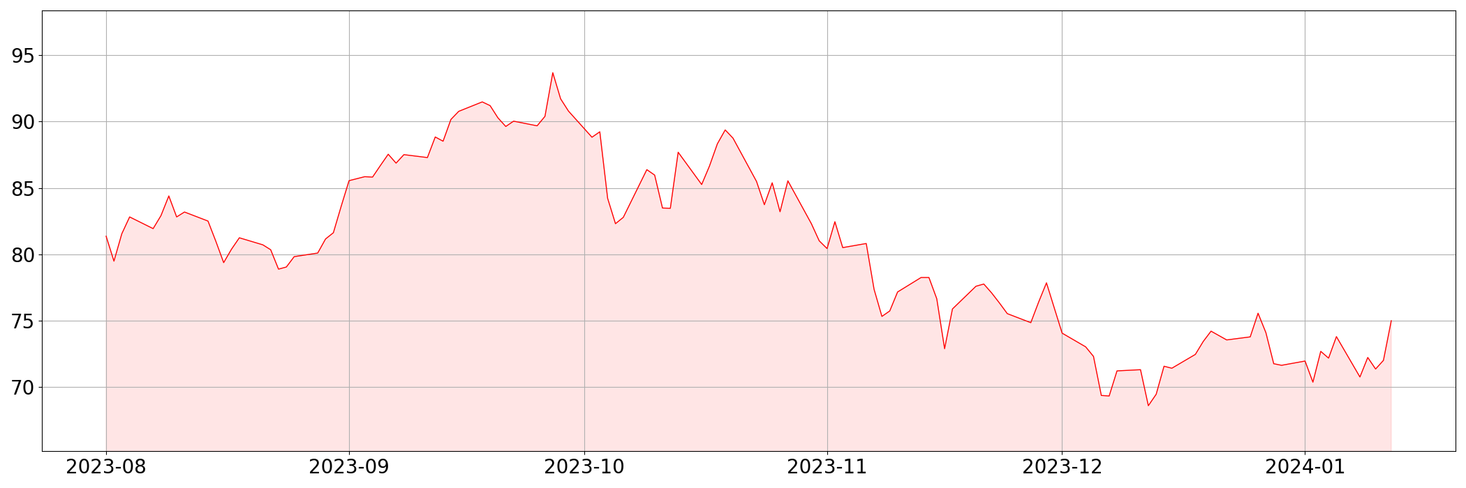 | 40일전 | 75.89 | 2.99 | 4.10% |