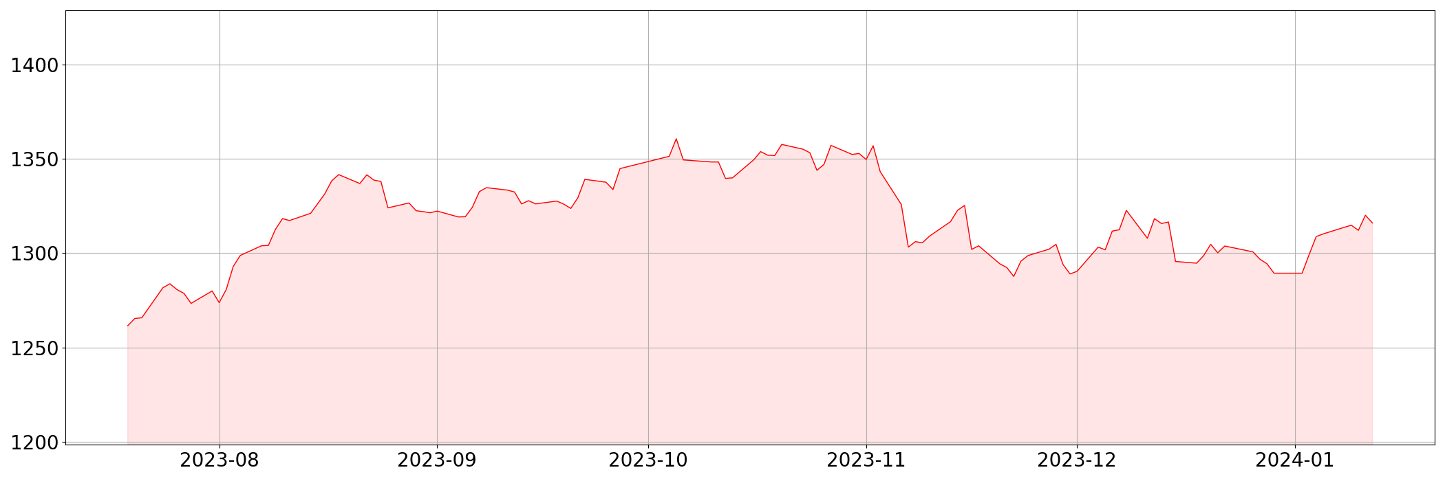 | 현재 | 1,316.00 | -4.10 | -0.31% |