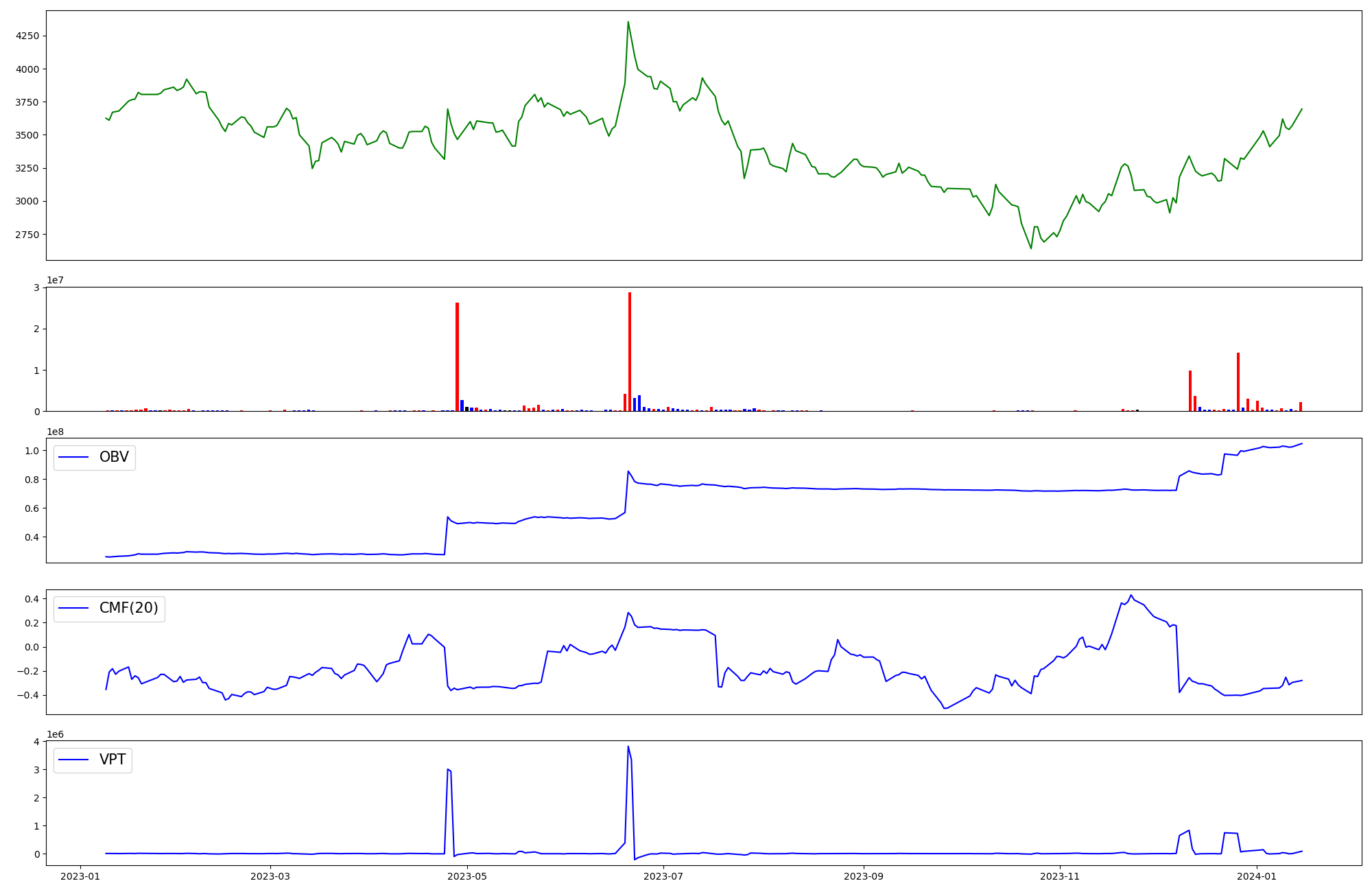 | OBV | CMF | VPT | |