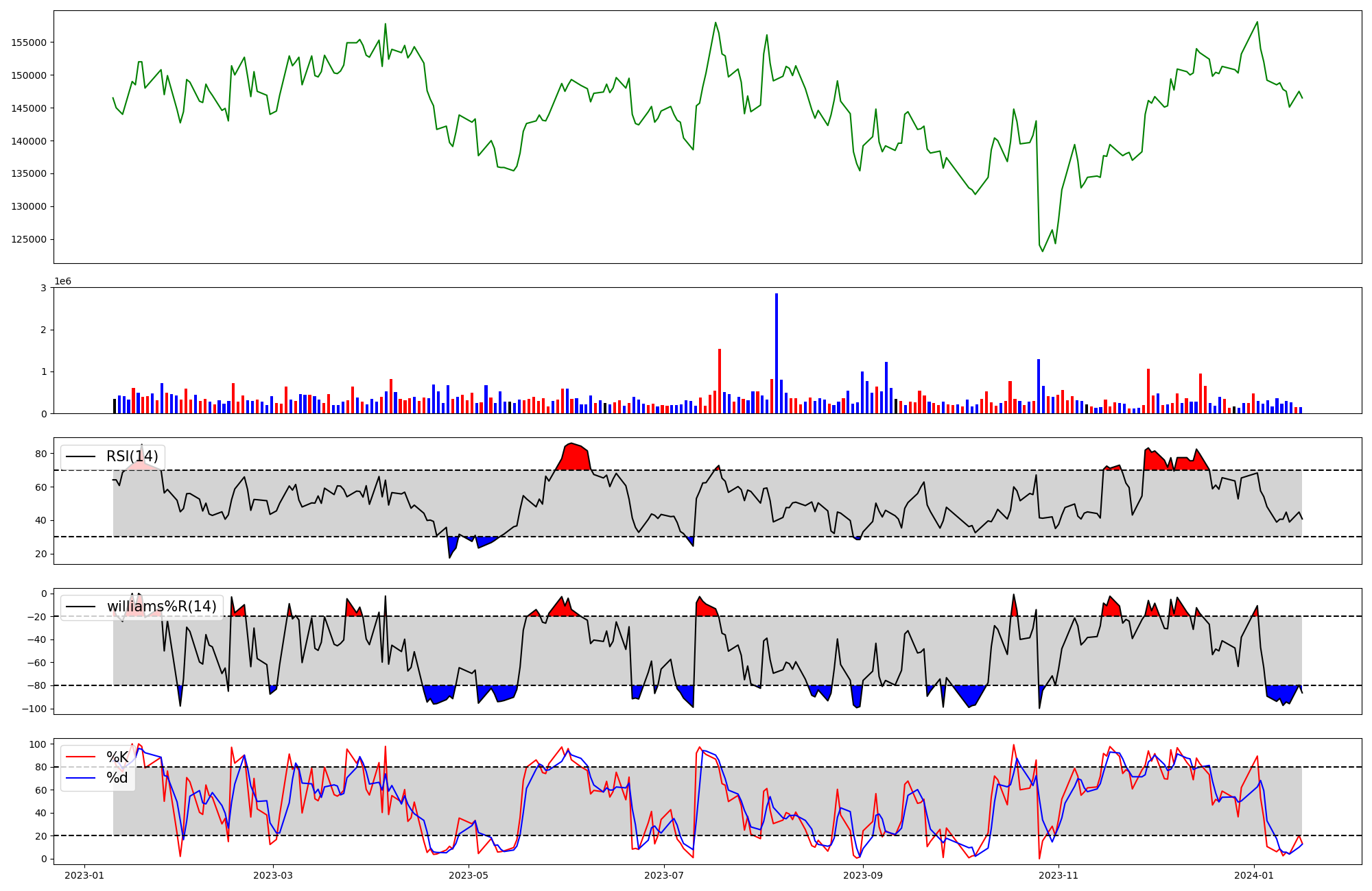 | RSI | Williams %R | stochastic(%K) | |