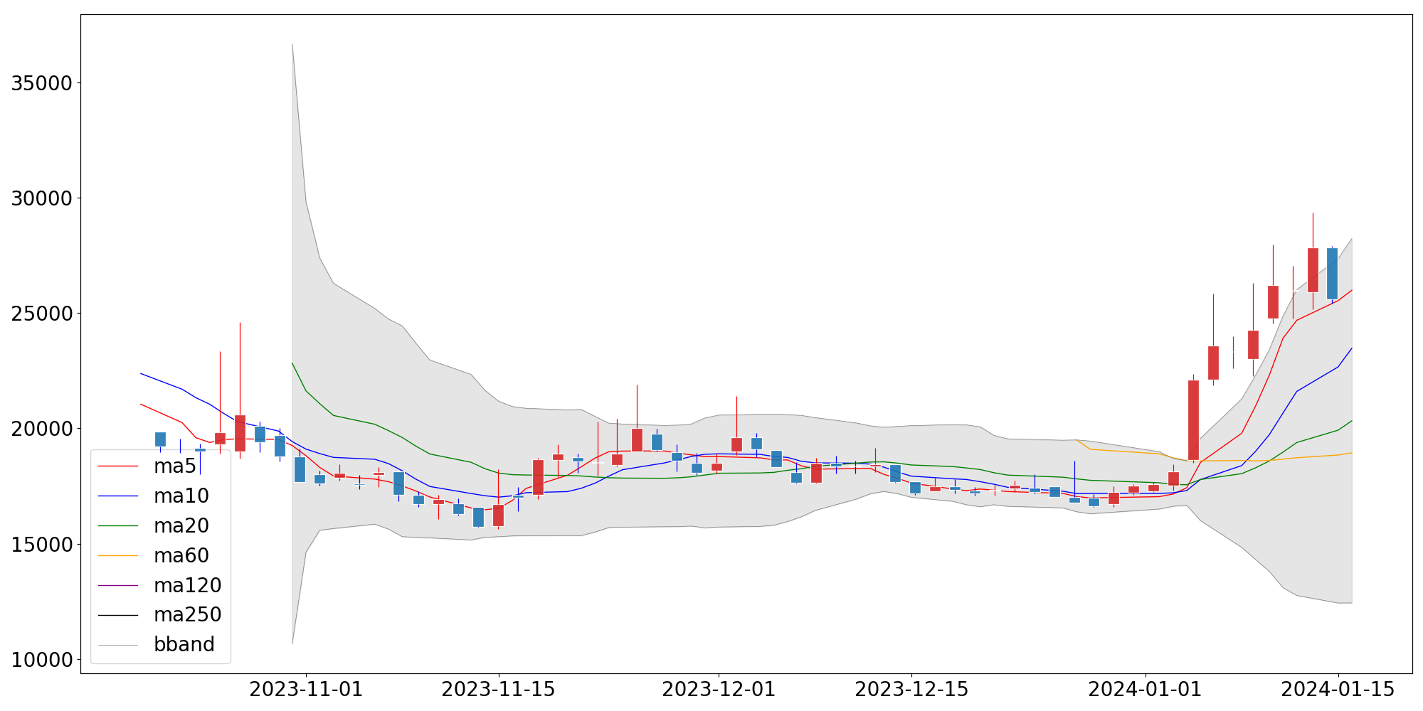 □ 장기 : 현재 종가가 장기(250일) 이동평균값(nan원)을 상회 하여 장기적 추세 상승 중