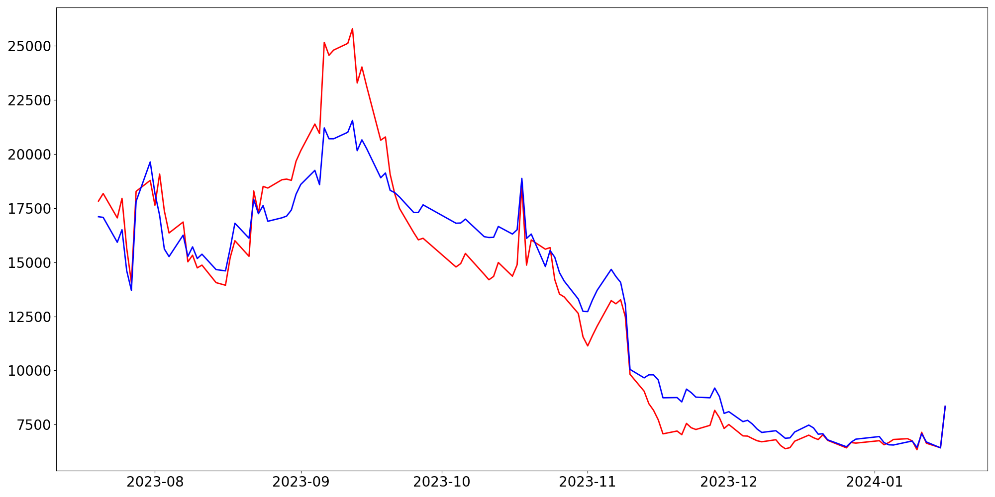 [ - : 실제값(종가) / - : 예측값(종가) ]